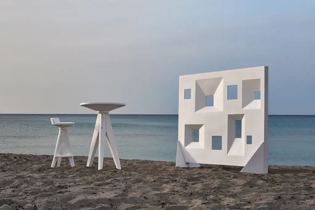 FRAMES is a module used as a room divider, fence or paneling, both in horizontal and vertical position through the use of its specific ballasts. The composition is characterized by flared surfaces that are the framework for small windows, making them pleasant geometric glimpses.
