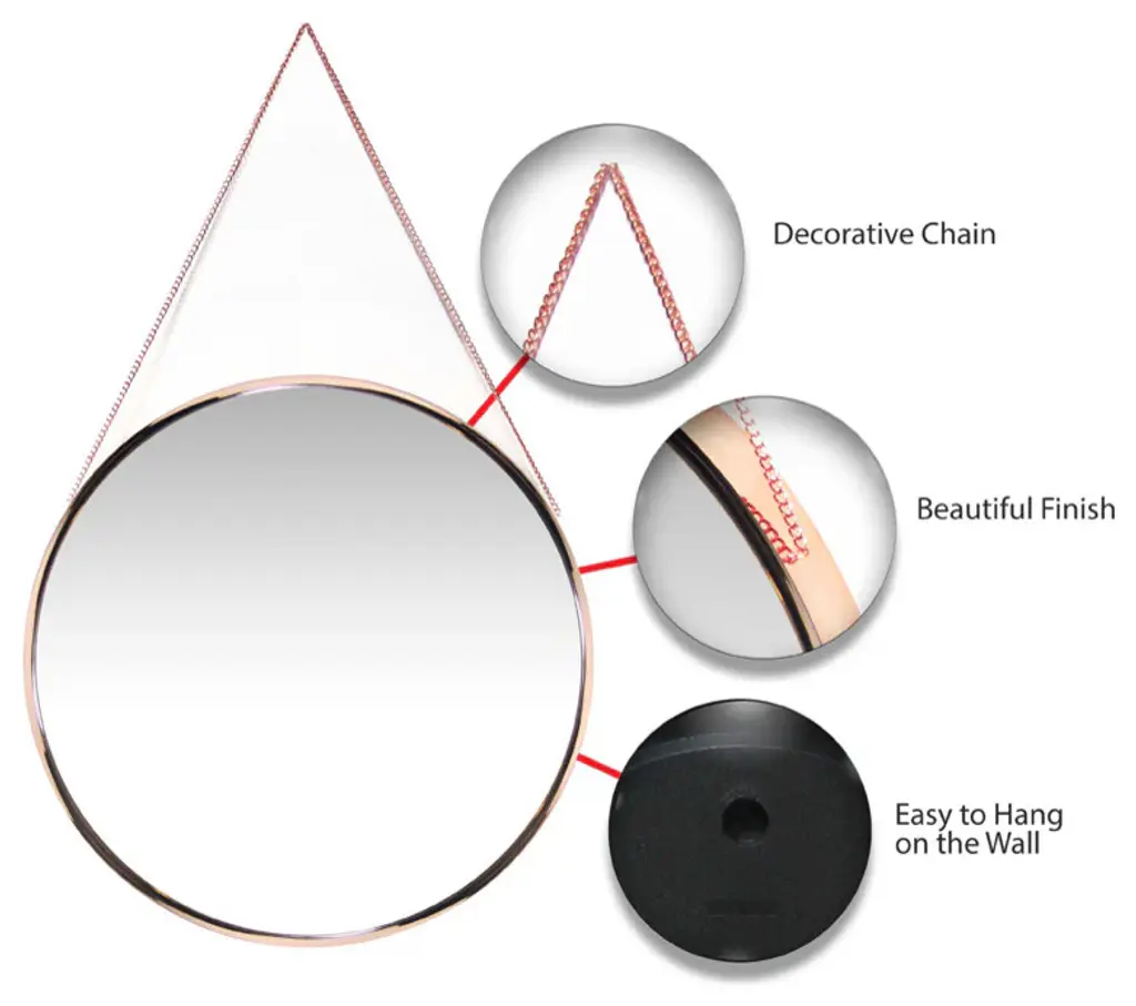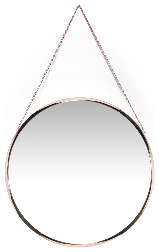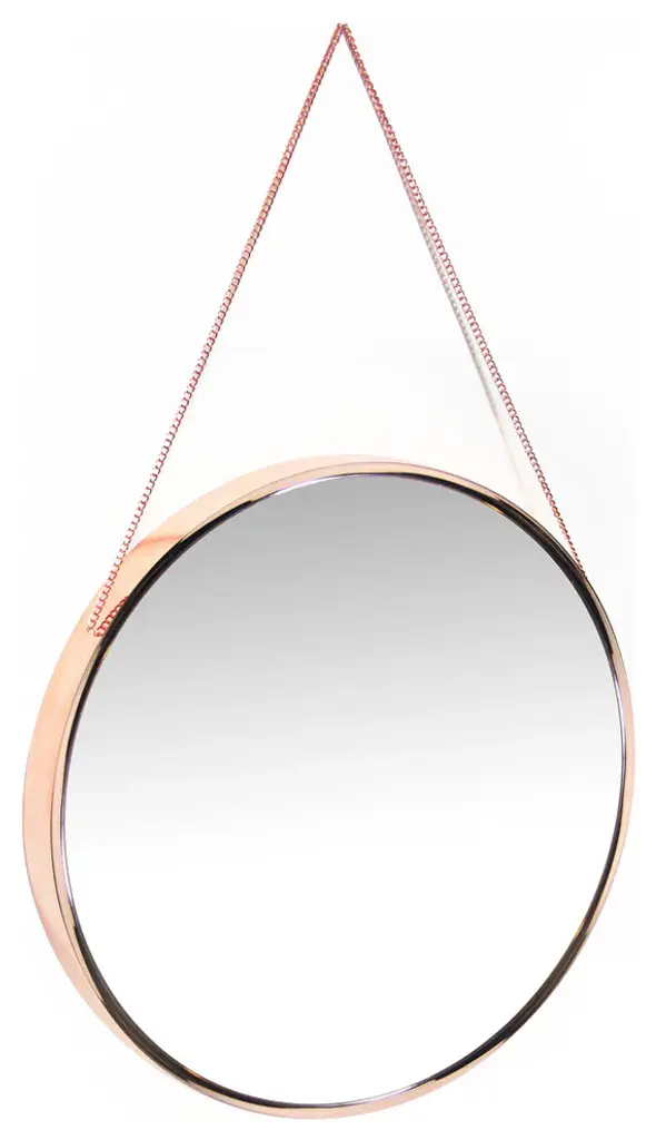 Artfully unique and simply stylish, the Franc rose gold mirror is a true piece of art. This round mirror comes with a rose gold chain that can be used to hang it, thus giving it a look that is novel and new.Ahead of all metal wall mirrors that you may have owned or seen, this one is a must have if you like the rich look of rose gold. This colour is currently in trend for home décor accents and a unique decorative mirror such as the Franc is the perfect modern/contemporary décor accent. Anyone with an eclectic taste will instantly be drawn to this bold 17.8-inch mirror. The mirror offers an interesting contrast when paired with pastels and plain wood. Imagine how gorgeous it would look when guests walk in and find this basic but beautiful mirror hung above a dark wooden entry way table. It is perfect for places that beg a little makeover, a nook that needs work- just hanging this mirror in that space will instantly transform it to a chic space that reflects and magnifies light with simple elegance.The Franc is a perfect gift for someone with a French Country Glam décor! A piece that will be in vogue for a long time to come.