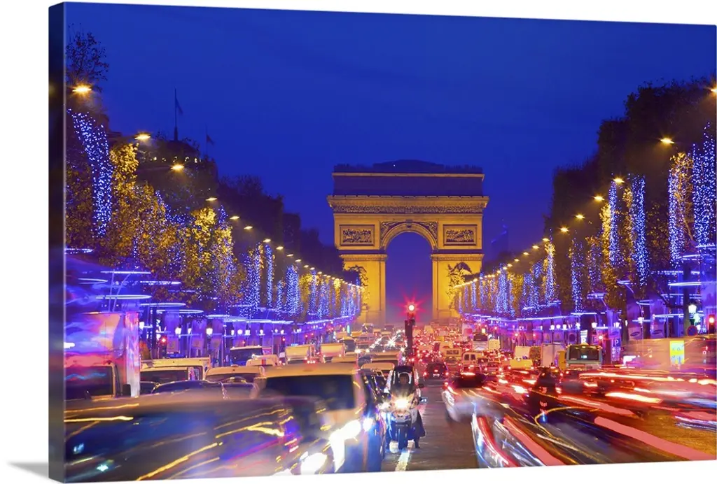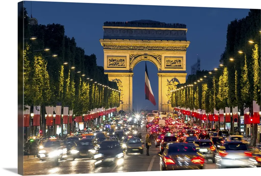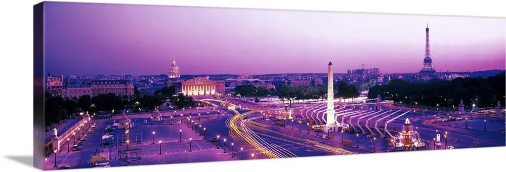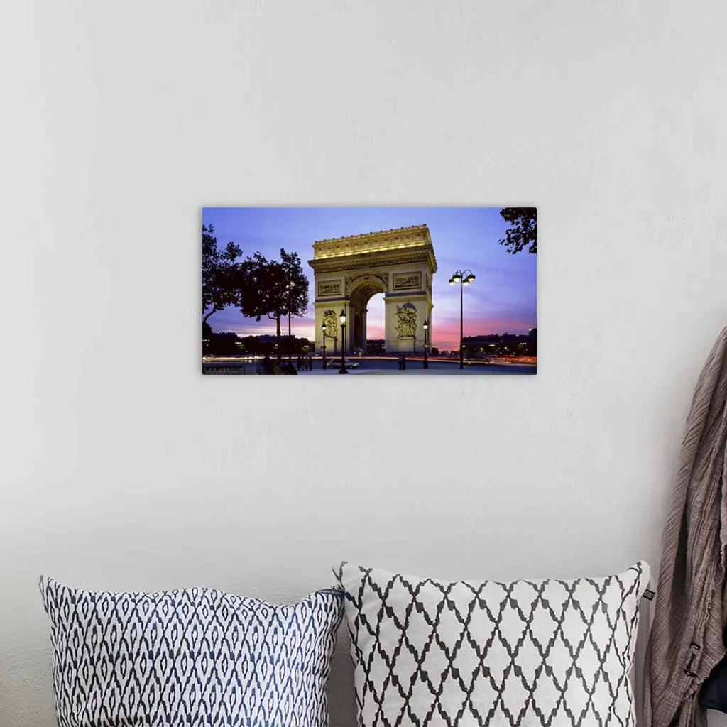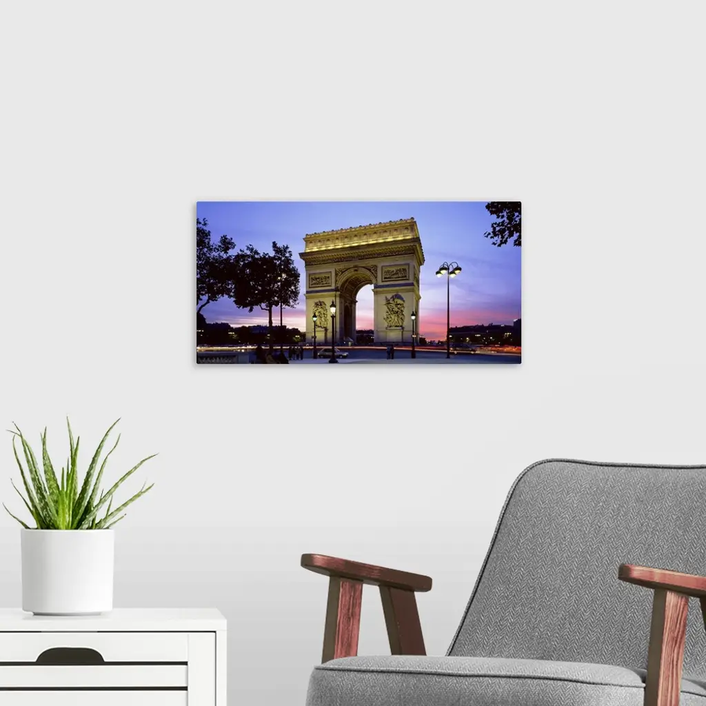 Panoramic photo on canvas of a monument in Paris at dusk.