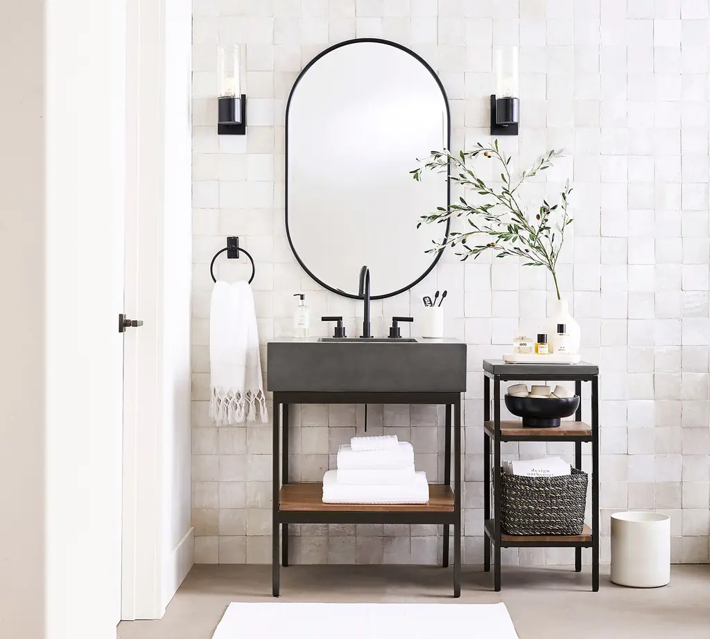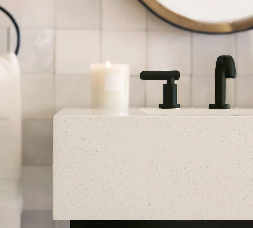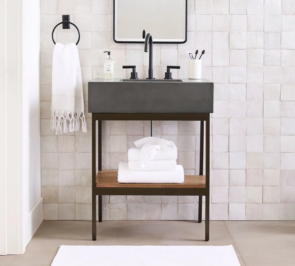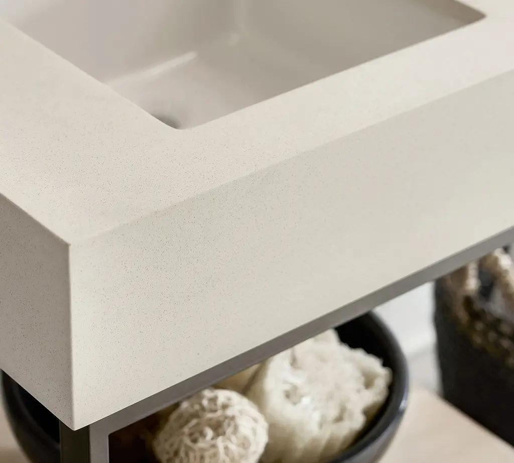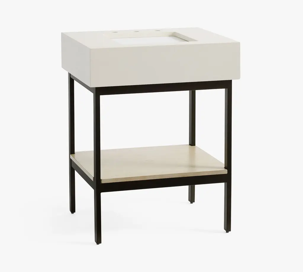 For a perfectly modern look, this pared-down collection is defined by its simple lines and sleek style. Give your bath an instant upgrade with its thick quartz top, wooden shelf, and open, easy-access base.