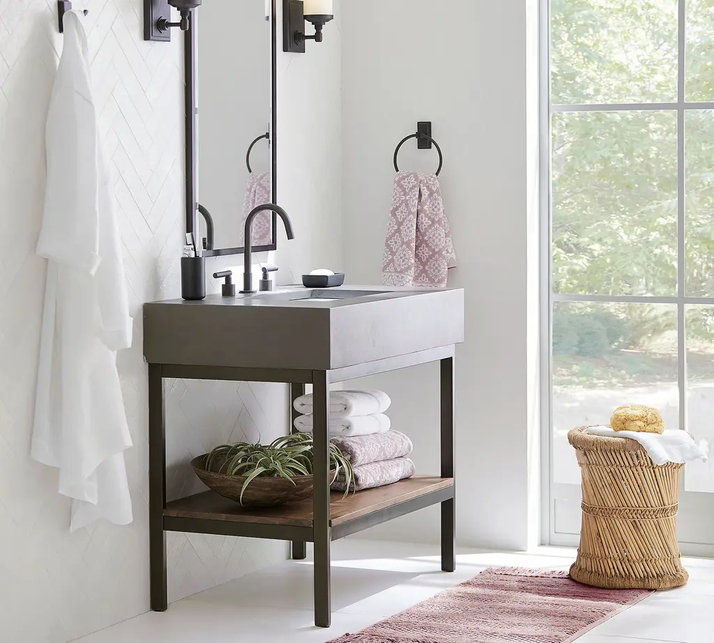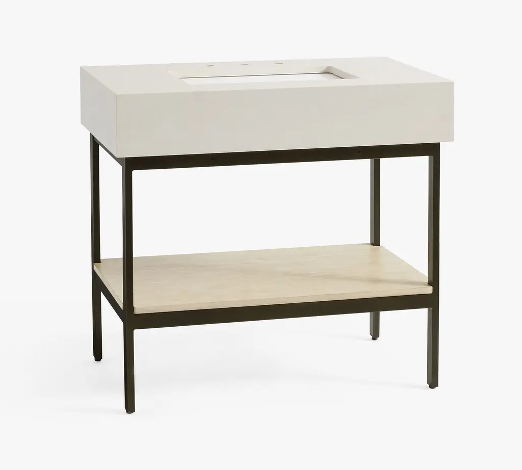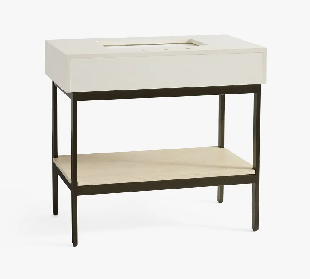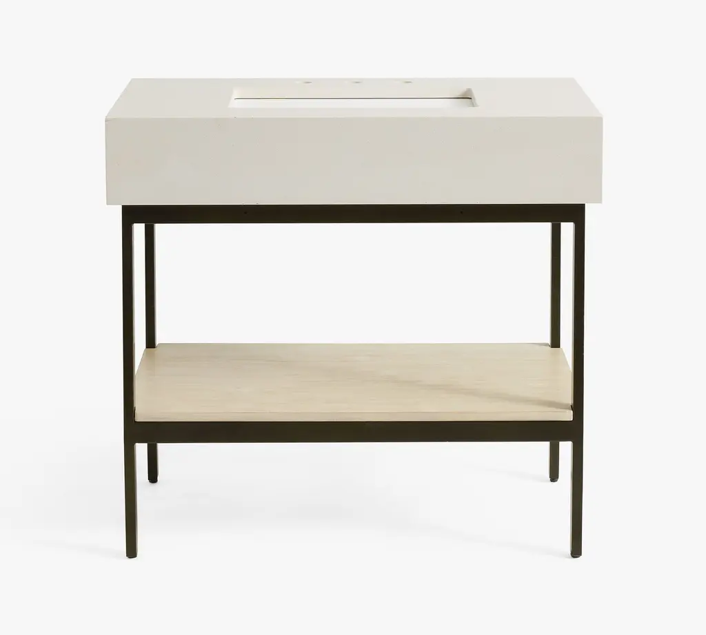 For a perfectly modern look, this pared-down collection is defined by its simple lines and sleek style. Give your bath an instant upgrade with its thick quartz top, wooden shelf, and open, easy-access base.