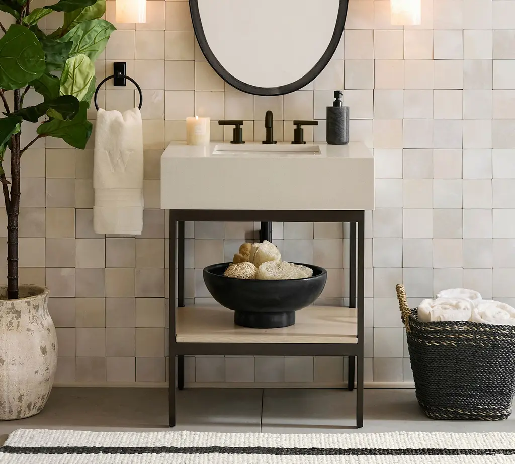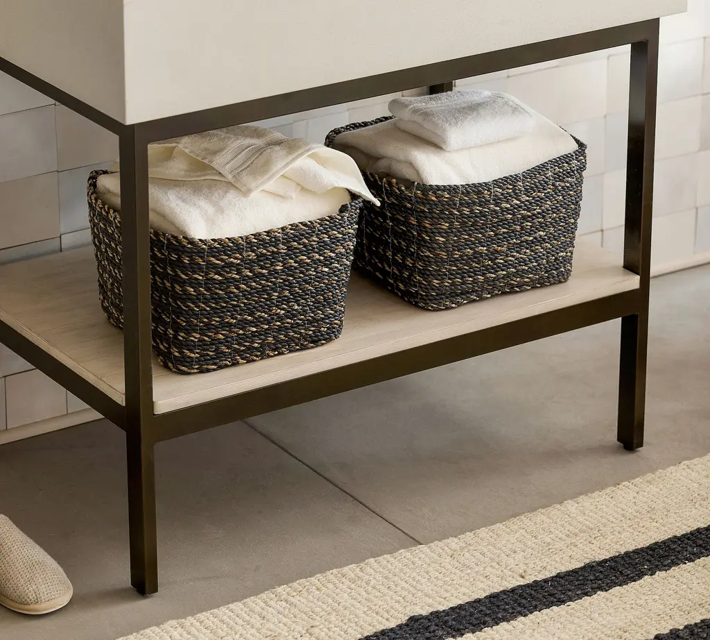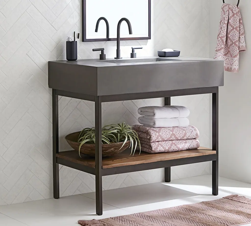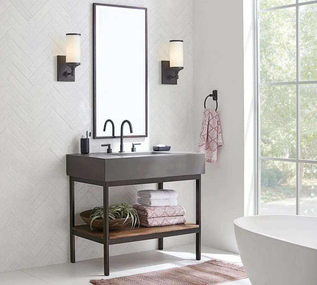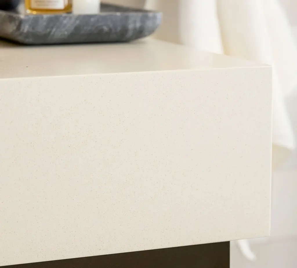 For a perfectly modern look, this pared-down collection is defined by its simple lines and sleek style. Give your bath an instant upgrade with its thick quartz top, wooden shelf, and open, easy-access base.