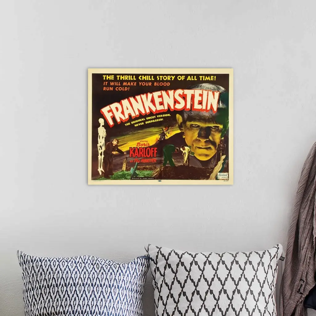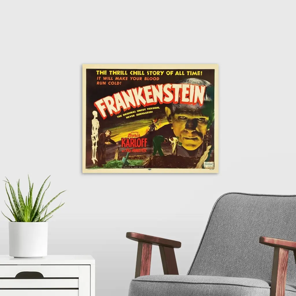 Frankenstein, L-R: Dwight Frye, Dwight Frye, Colin Clive, Boris Karloff On 1951 Re-Release Title Card, 1931.