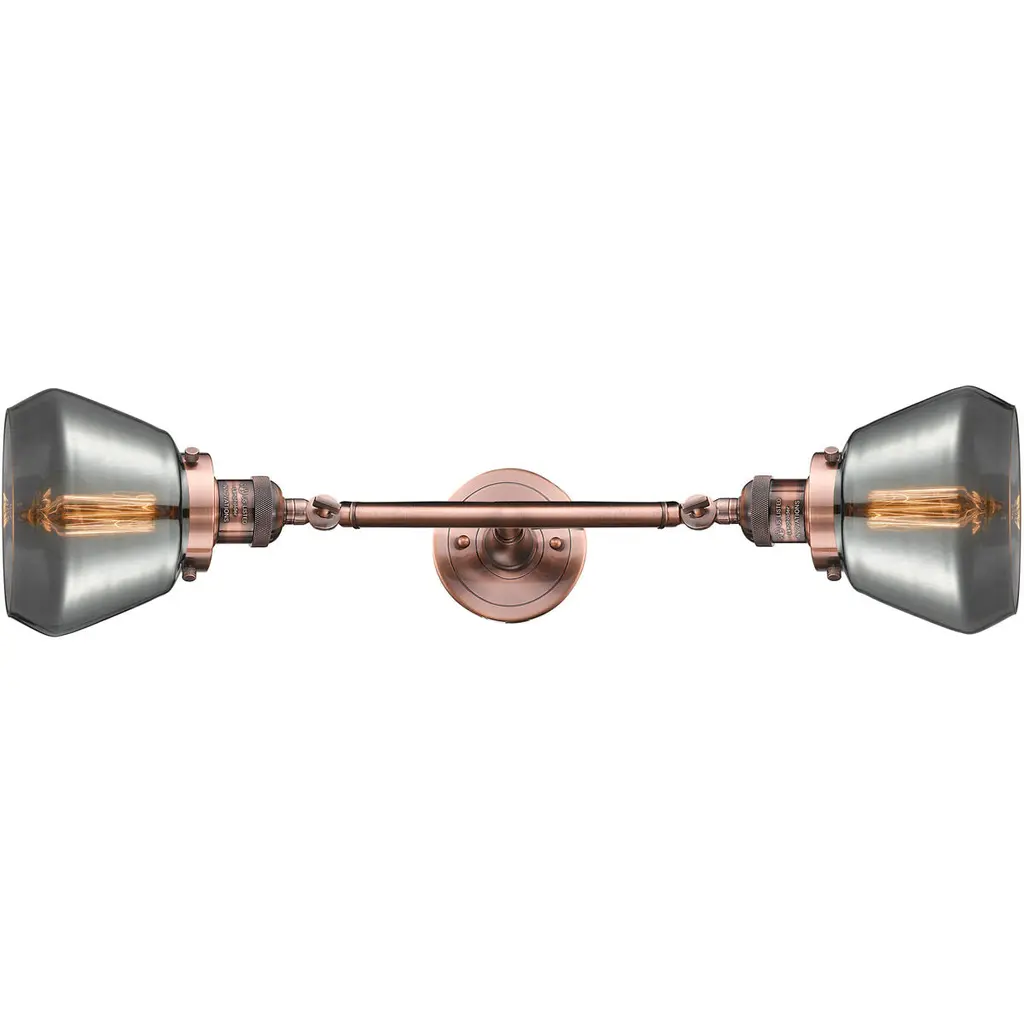 Franklin Restoration Fulton 2 Light 17 Inch Antique Copper Bath Vanity Light Wall Light In Plated Smoke Glass, Franklin Restoration