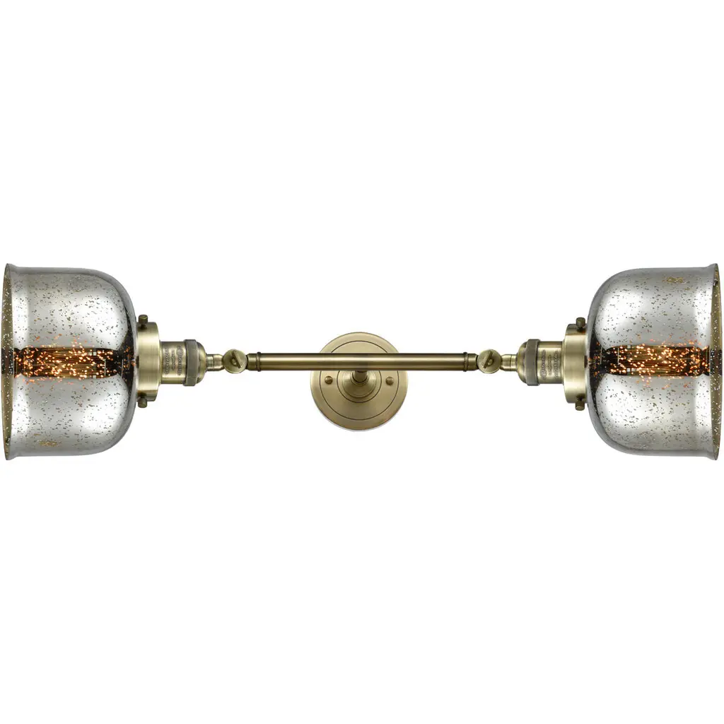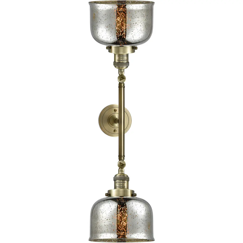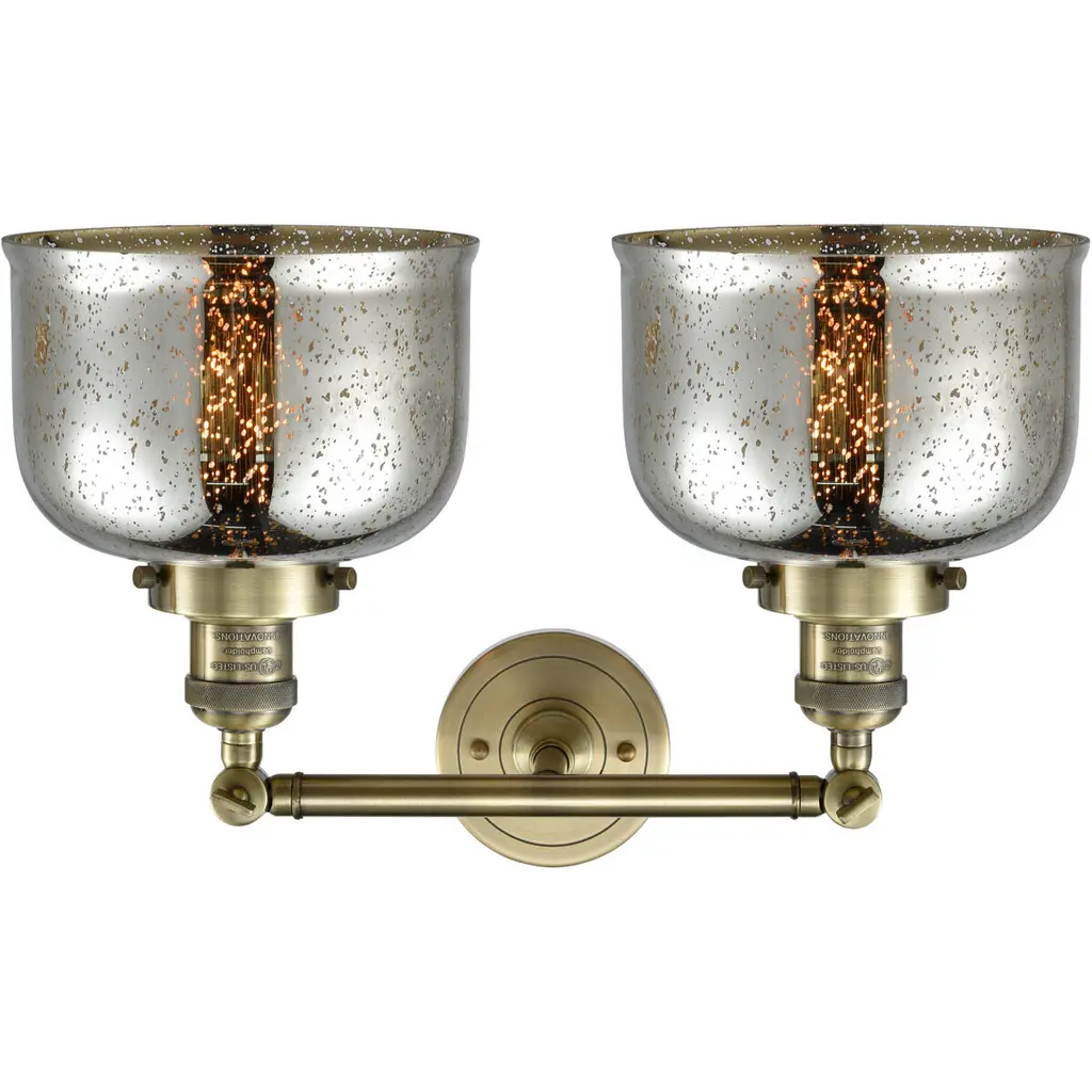 Franklin Restoration Large Bell 2 Light 18 Inch Antique Brass Bath Vanity Light Wall Light In Incandescent, Silver Plated Mercury Glass, Franklin Restoration