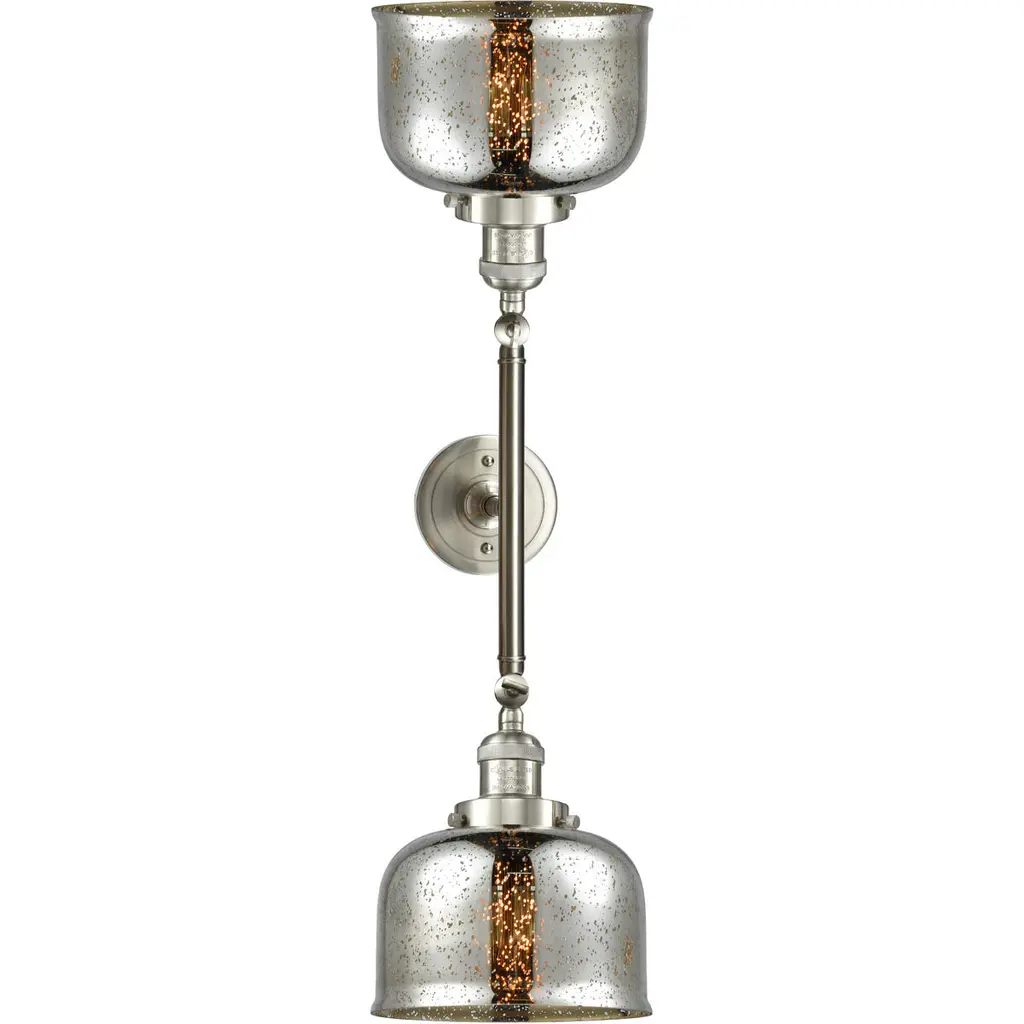 Franklin Restoration Large Bell Led 18 Inch Brushed Satin Nickel Bath Vanity Light Wall Light In Silver Plated Mercury Glass, Franklin Restoration