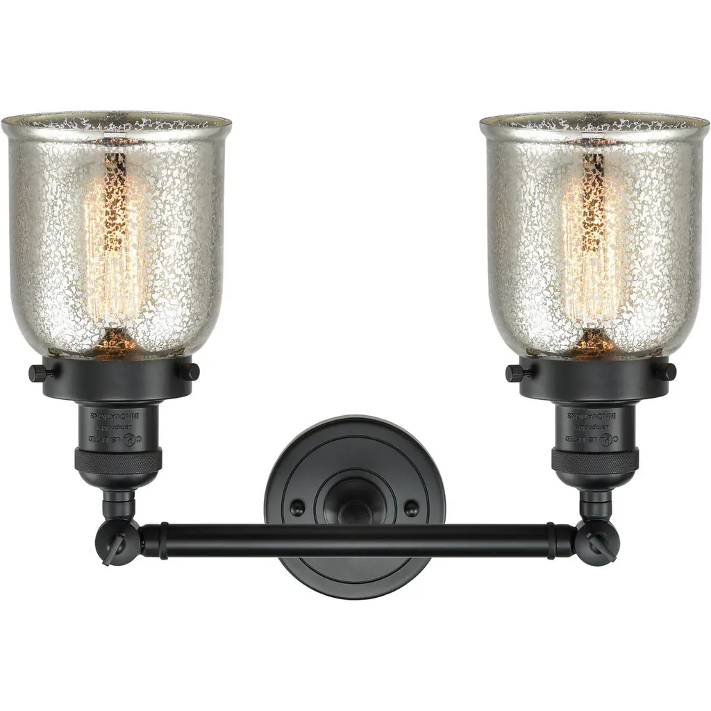 Franklin Restoration Small Bell 2 Light 15 Inch Matte Black Bath Vanity Light Wall Light In Silver Plated Mercury Glass, Franklin Restoration