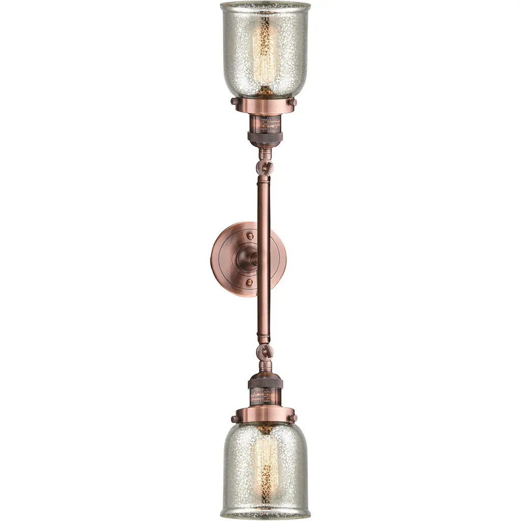 Franklin Restoration Small Bell Led 15 Inch Antique Copper Bath Vanity Light Wall Light In Silver Plated Mercury Glass, Franklin Restoration