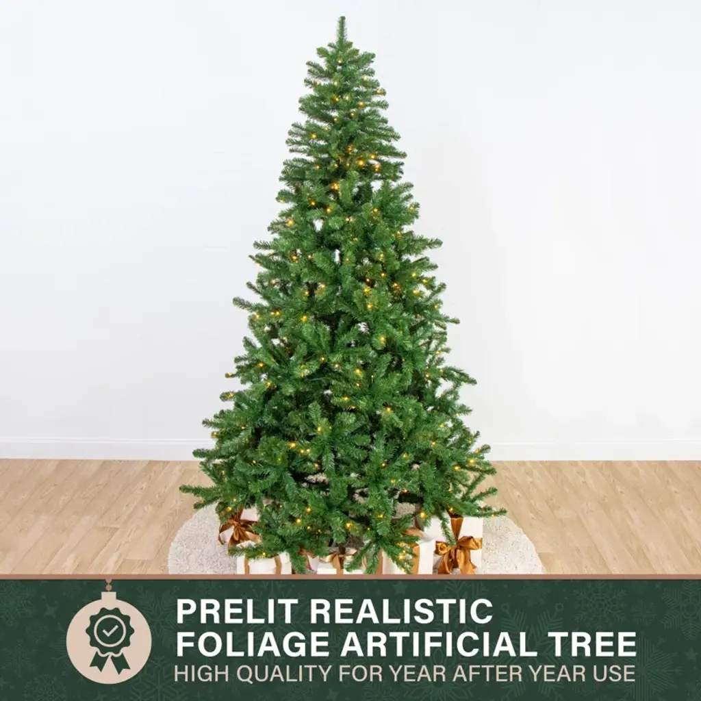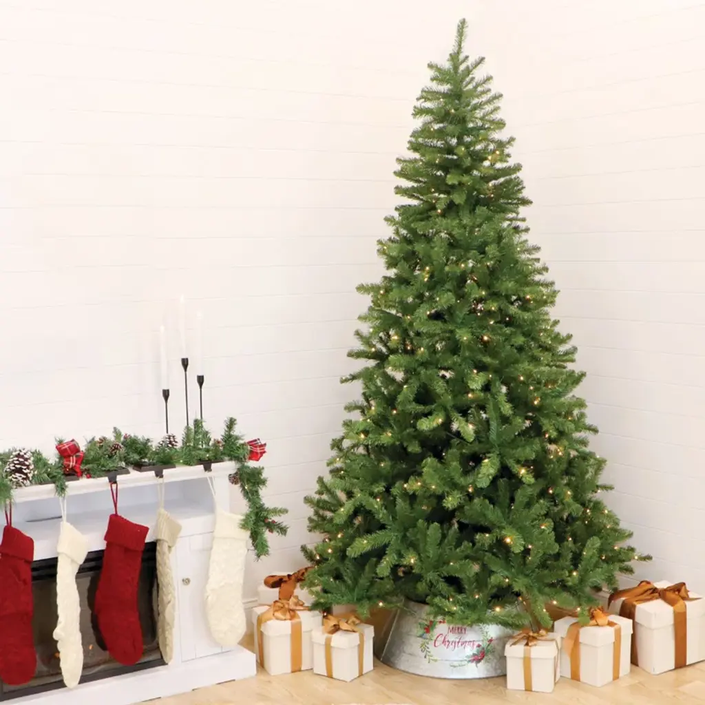 With Fraser Hill Farm, enjoy all the long-term benefits that come with owning an artificial tree. The 7.5-ft. Noel Pine Christmas tree features a lifelike foliage and all-metal hinged branch construction for strength and durability. The tree needles are constructed out of non-allergenic and flame-retardant materials then painted multiple hues of green so no two are exactly alike. Together these details create the look of a natural tree that requires hardly any maintenance. The tree is prestrung with color changing multicolor 5MM lights with 10 functions so you can choose whether you want the lights to twinkle, stay steady, or many other options. An included foot pedal adds convenience so you can change the light settings easily. The tree is protected by a 1 year warranty so you can celebrate the holidays with peace of mind. With the Noel Pine Christmas tree, simply unfold out of storage and decorate.