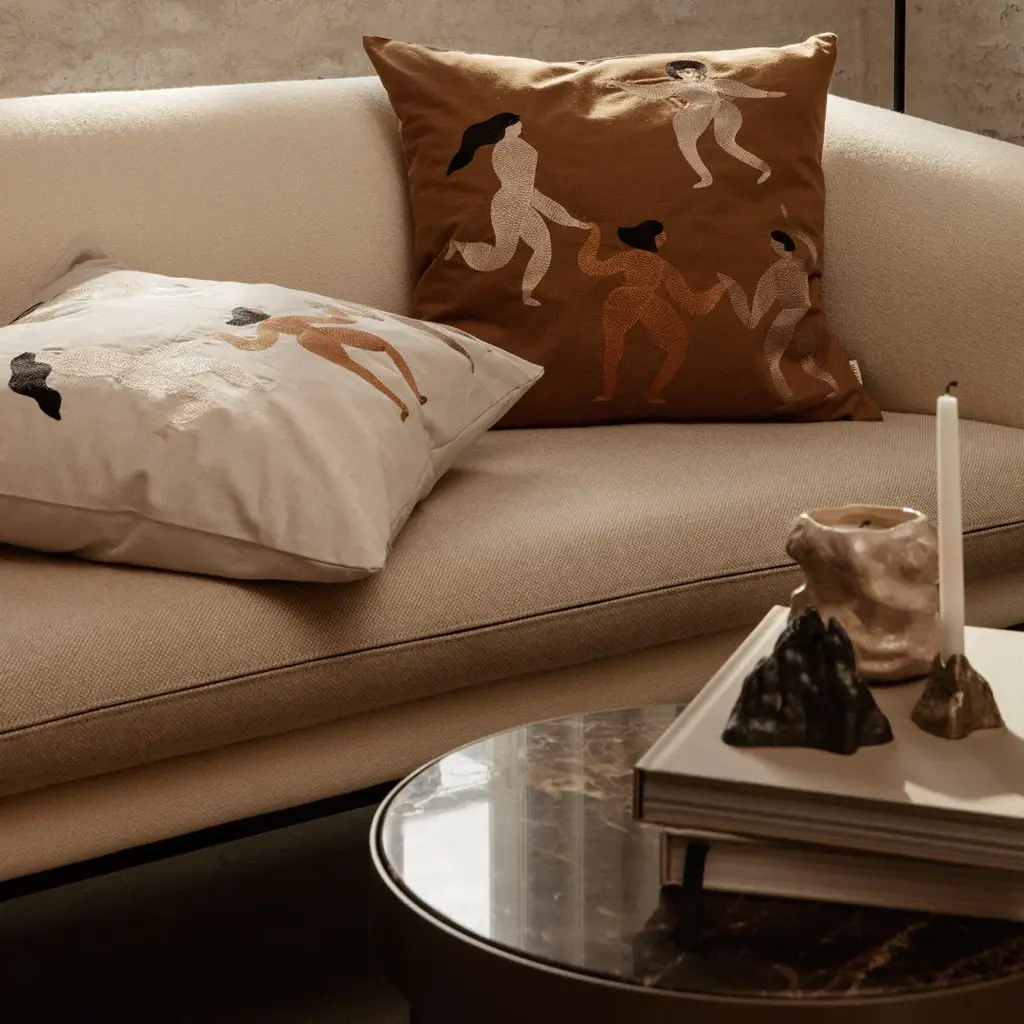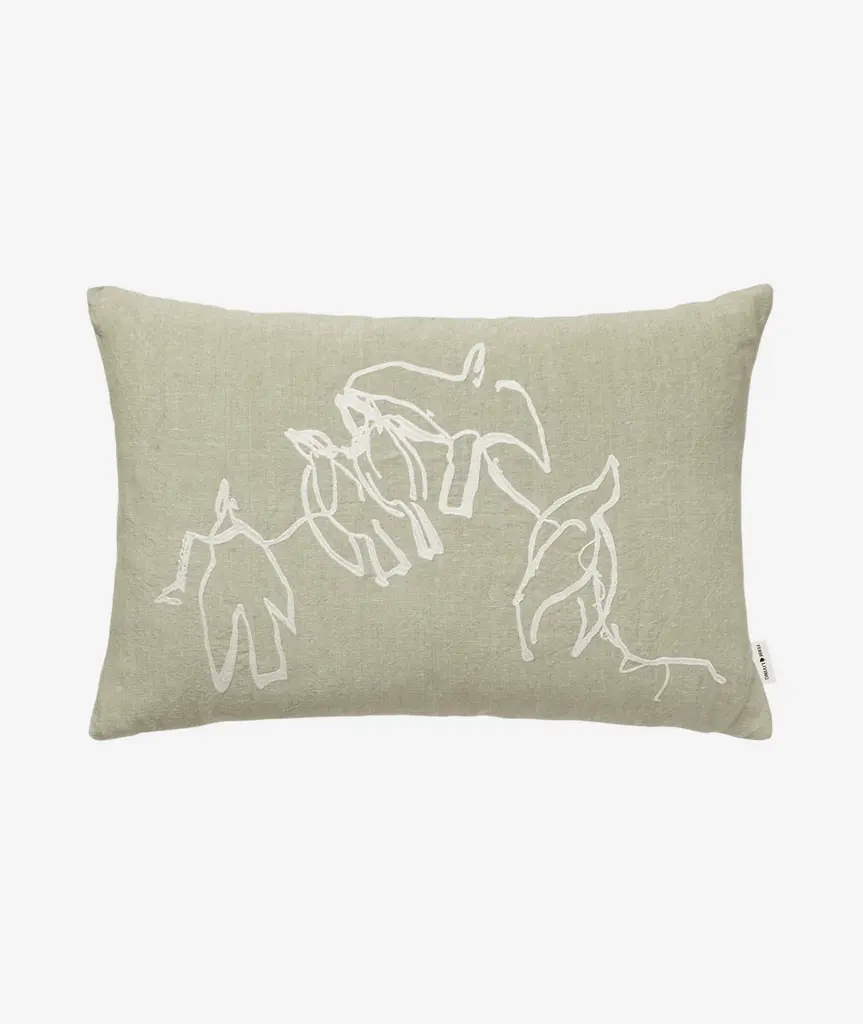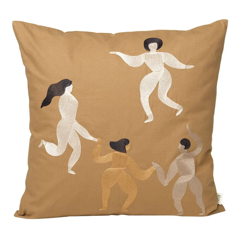 Bring a sense of soft serenity to your space with the Free Cushion. With its calming motif of four dancing bodies embroidered with silky thread onto a pillowcase of 100% raw, organic cotton, it will add a lovely, feminine touch to your sofa or bedroom.