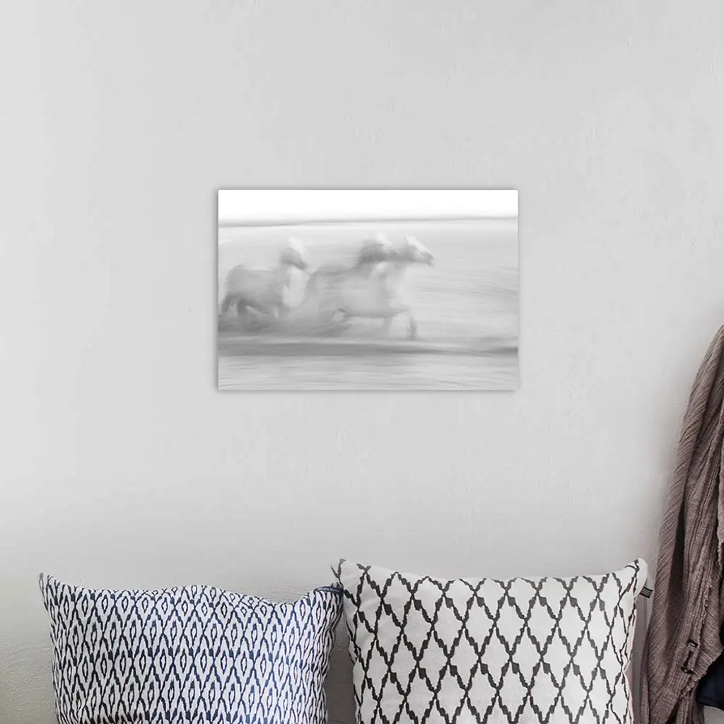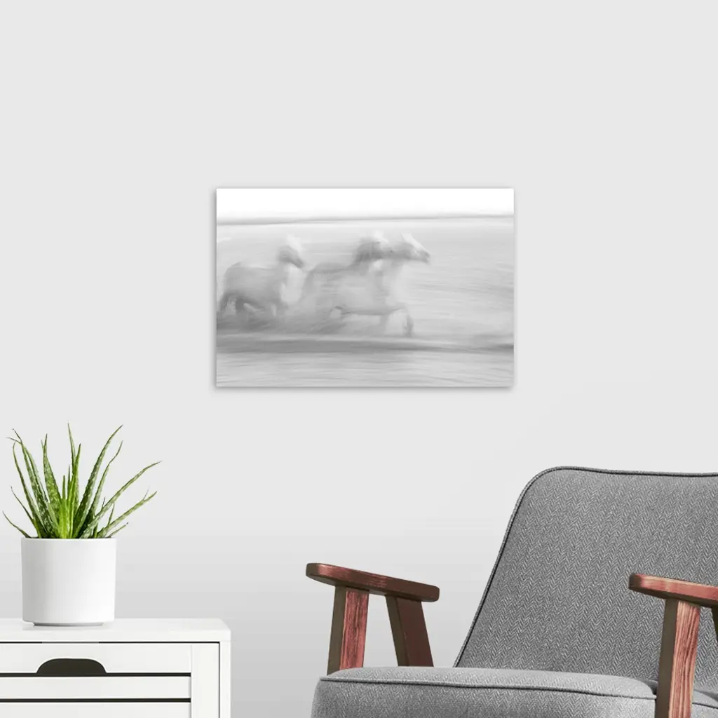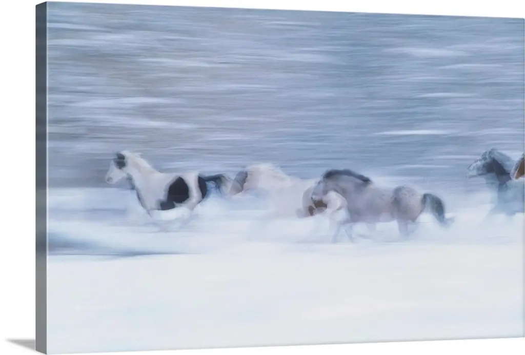 Abstract photo of horses galloping that has been edited to illustrate a motion blur effect.