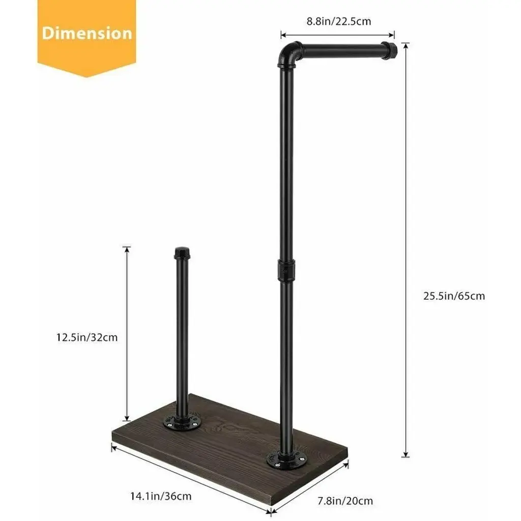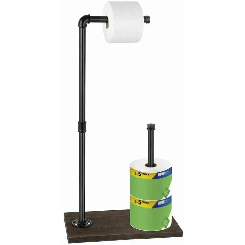 [PERFECT DESIGNED]The perfect combination of rustic iron pipe and sturdy wooden slab adds a very retro and industrial touch to your bathroom, beautifully varnished makes your restroom with a retro elegant style. It fits perfect in farmhouse, primitive decor, bathroom and restroom. [HIGH-QUALITY MATERIAL]Attention to detail and quality craftsmanship! The rustic farmhouse toilet paper roll holder is made of sturdy cast iron ferrous metal tube, durable, and has enough weight to ensure the stability of the product on the floor. The size is 25.5*14.1*7.8 inches, suitable for placing between the toilet and the counter or wall, save space and move freely. [STORAGE FUNCTION] Our toilet paper standing storage rack can hold a commercial or regular toilet paper, and has a spare storage space that can hold 3 rolls of toilet paper. It avoids the embarrassment of using up a roll of paper under unknown circumstances and guarantees the sufficiency of toilet paper.
