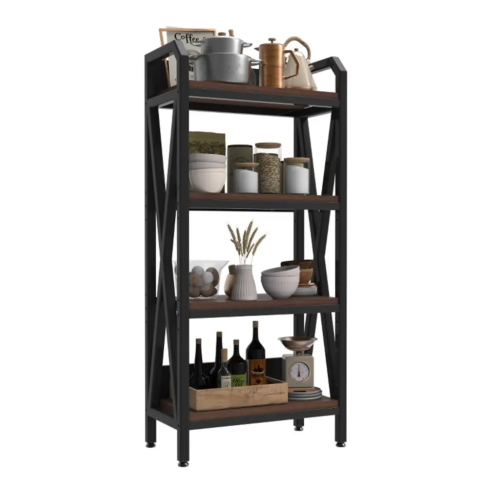 Maximize your kitchen or home storage with this 4-tier freestanding baker’s rack designed for space-saving vertical organization and multi-room functionality. Featuring adjustable shelves, this unit provides flexible storage for cookware, pantry goods, or everyday essentials, while the open-back design offers easy access and effortless cleanup. Built from heavy-duty steel and engineered wood, each shelf supports up to 240 lb, ensuring long-lasting durability for any use case—from kitchen storage to garage organization. The farmhouse style and clean, minimalist lines fit seamlessly into any décor, whether traditional or modern. Assembly is straightforward with all tools and labeled parts included, making setup quick and hassle-free. Product dimensions: 33.46 in L x 15.75 in D x 55.12 in H; Shelf weight capacity: 240 lb per level; Total weight capacity: 960 lb.