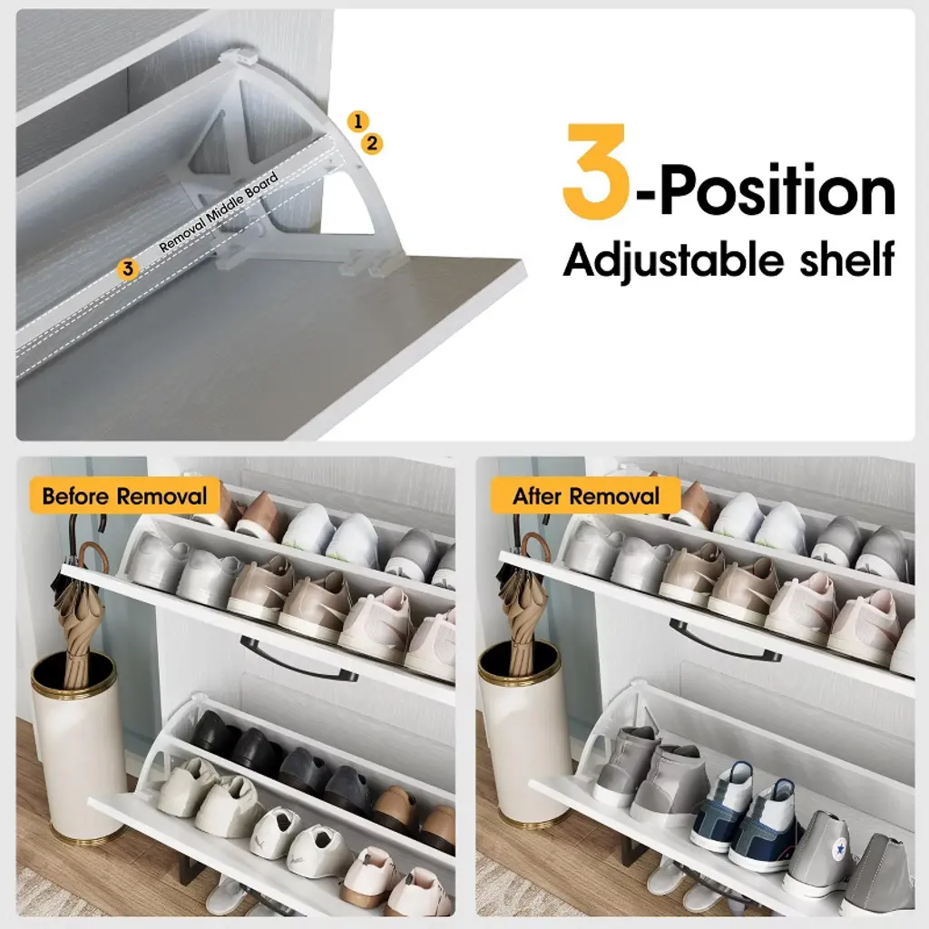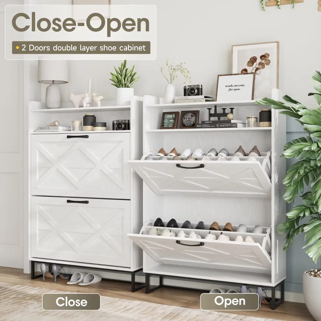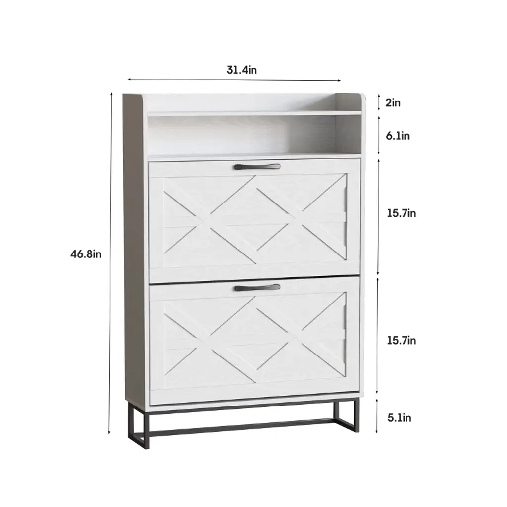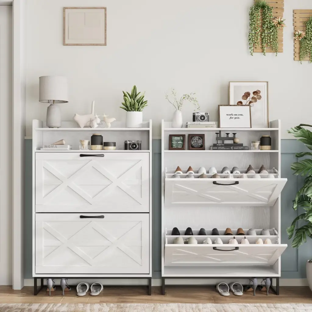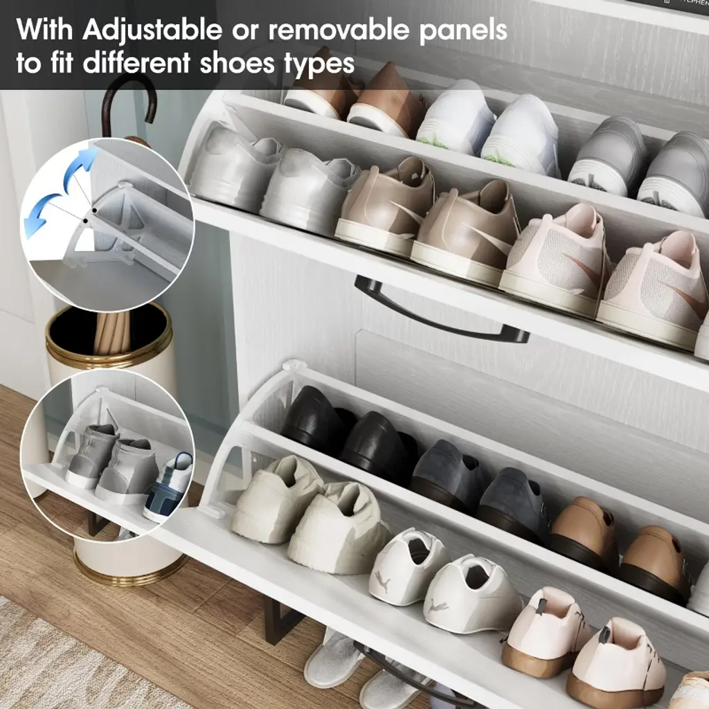 Freestanding Shoe Storage Cabinet With Flip Drawers For Entryway, White