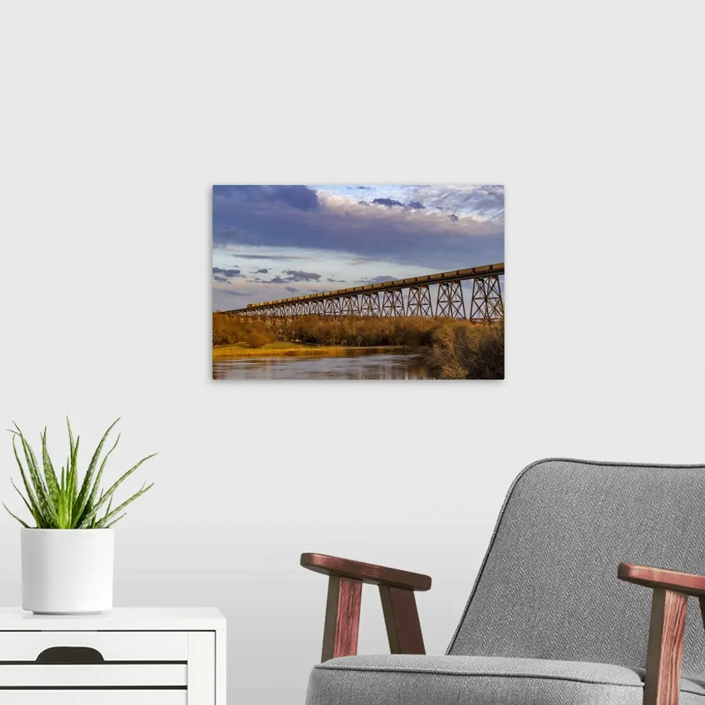Freight Train Crosses Hi-Line Trestle Over Sheyenne River, Valley City, North Dakota
