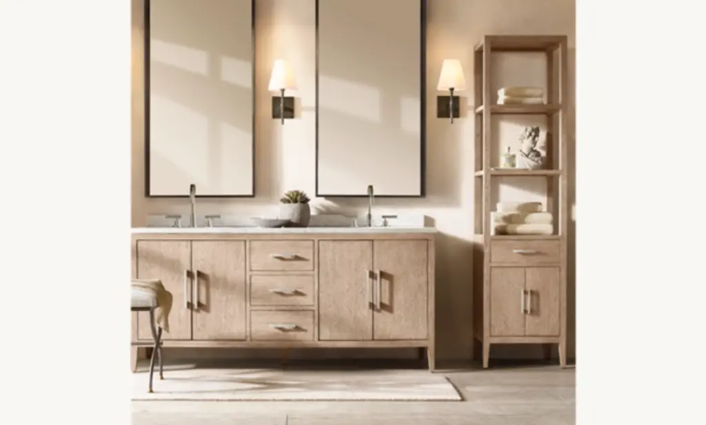 Inspired by clean-lined classical forms, our bath collection designed by the Van Thiels is defined by simple silhouettes and refined restraint. The crisp geometric profiles are handcrafted of American white oak that's been sandblasted to impart a subtle texture.SHOP THE ENTIRE COLLECTION