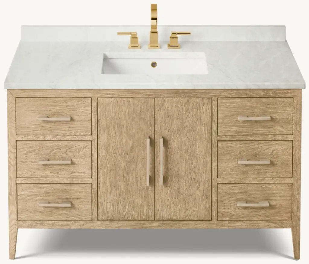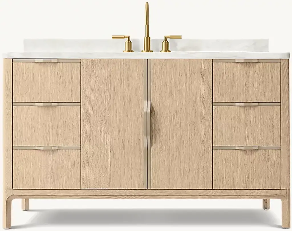 Inspired by clean-lined classical forms, our bath collection designed by the Van Thiels is defined by simple silhouettes and refined restraint. The crisp geometric profiles are handcrafted of American white oak that's been sandblasted to impart a subtle texture.SHOP THE ENTIRE COLLECTION