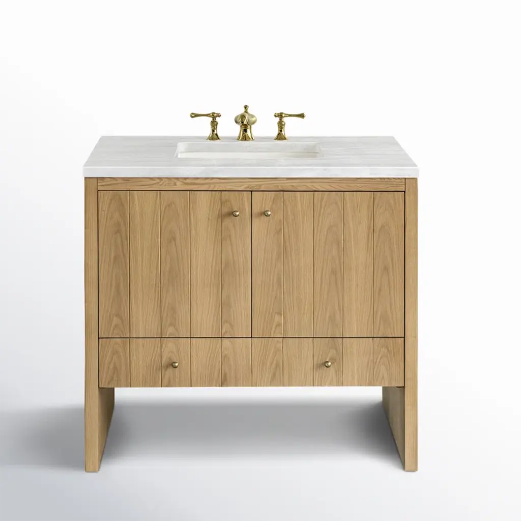 Inspired by clean-lined classical forms, our bath collection designed by the Van Thiels is defined by simple silhouettes and refined restraint. The crisp geometric profiles are handcrafted of American white oak that's been sandblasted to impart a subtle texture.SHOP THE ENTIRE COLLECTION