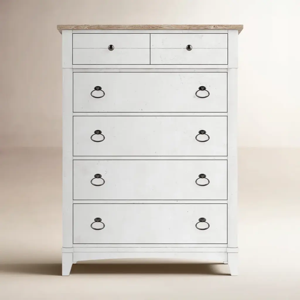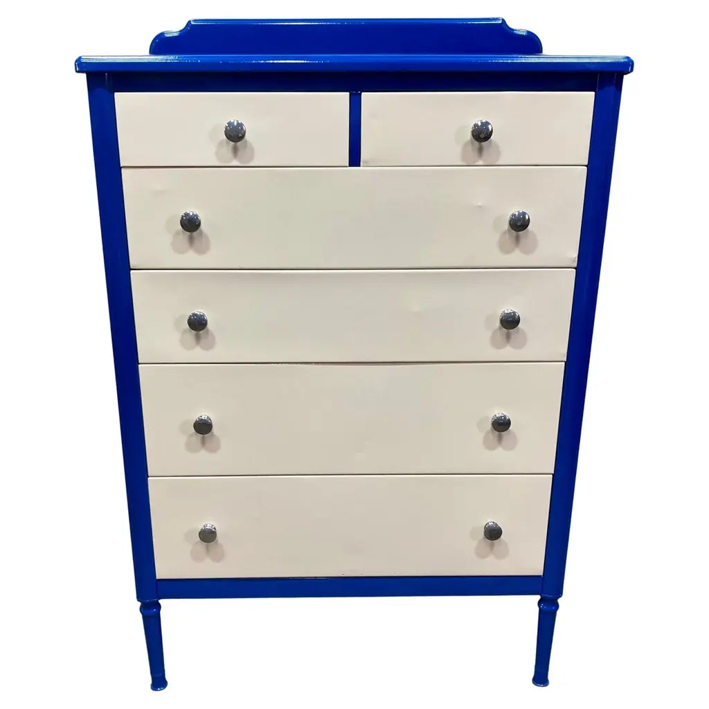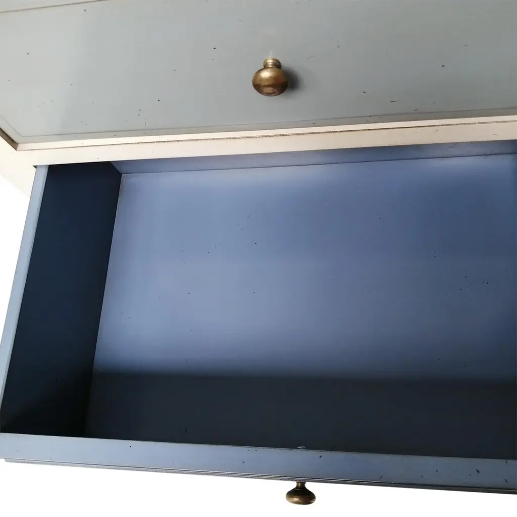 This Chiffonnier 6-drawer chest is a free hand crafted and modernized interpretation of the French Directoire style at the end of the 18th century. This period style is remarkable with its straight, classical and timeless lines with diamonds or grooves on the front.This storage furniture features a white-cream lacquer for the wooden structure and 6 different lacquers for the drawers. From Top to bottom : Ivory, molde-grey, green-grey, azur blue, night blue and brown.All drawers have dovetails mounted fronts and are made of wild cherry wood.Inside drawers dimensions are 46 cm / 18.1'' for the length, 14 cm / 5.5'' the height and 20 cm / 7.9'' for the depth. The sourcing of the solid wood comes from sustainably managed French forests.GONTIER, a brand of MON PETIT MEUBLE FRANCAIS group, provides you exclusively with 100% made in France classical and contemporary pieces of furniture.The manufacture of each furniture is made accordingly to traditional French techniques of woodworking by small Craft workshops in the western countryside of France (Loire Valley and Bretagne). We offer a 5 year warranty on each piece.