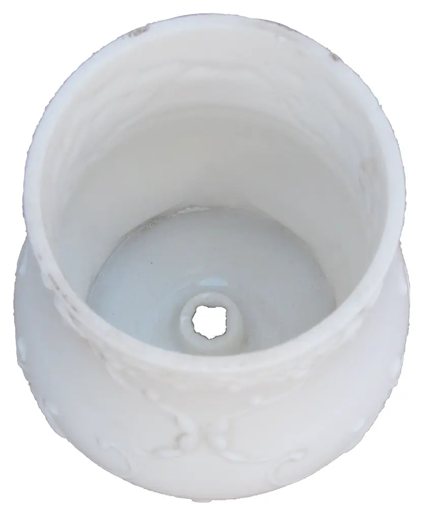 Elegant example of French opaline glass probably started life as a light fixture element. We Lovely for display on its own; add a glass liner to use as a vase or insert a small votive holder and candle for a luminous candleholder. No maker's marks to indicate age or manufacturer but believed to be from the early 20th C. Good antique condition with edge roughness at the rim.