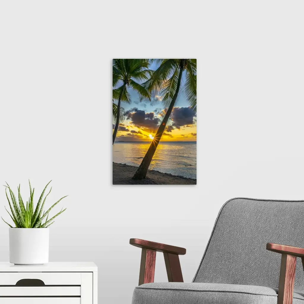 French Polynesia, Tikehau Atoll, Sunset On Palm Trees And Ocean