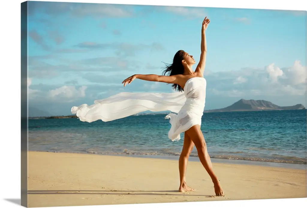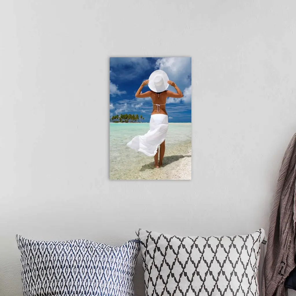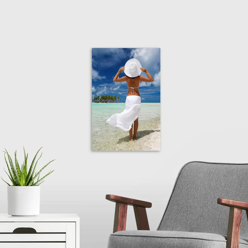 French Polynesia, Tuamotu Islands, Rangiroa Atoll, Woman Standing At Ocean's Edge wall art for home and office decor. Discover canvas art prints, photos, mural, big canvas art and framed wall art in GreatBigCanvas.com's varied collections.