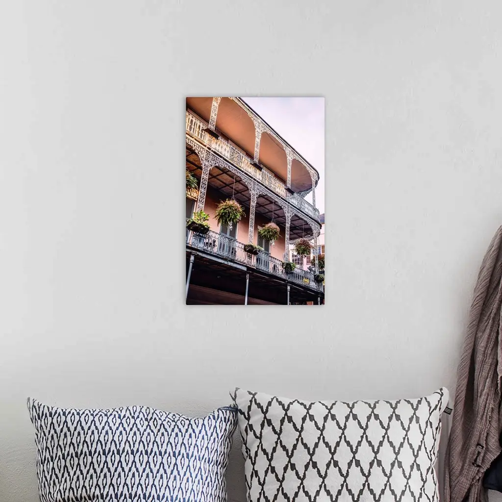 View of ironwork detail and French quarter architecture in New Orleans, Louisiana.