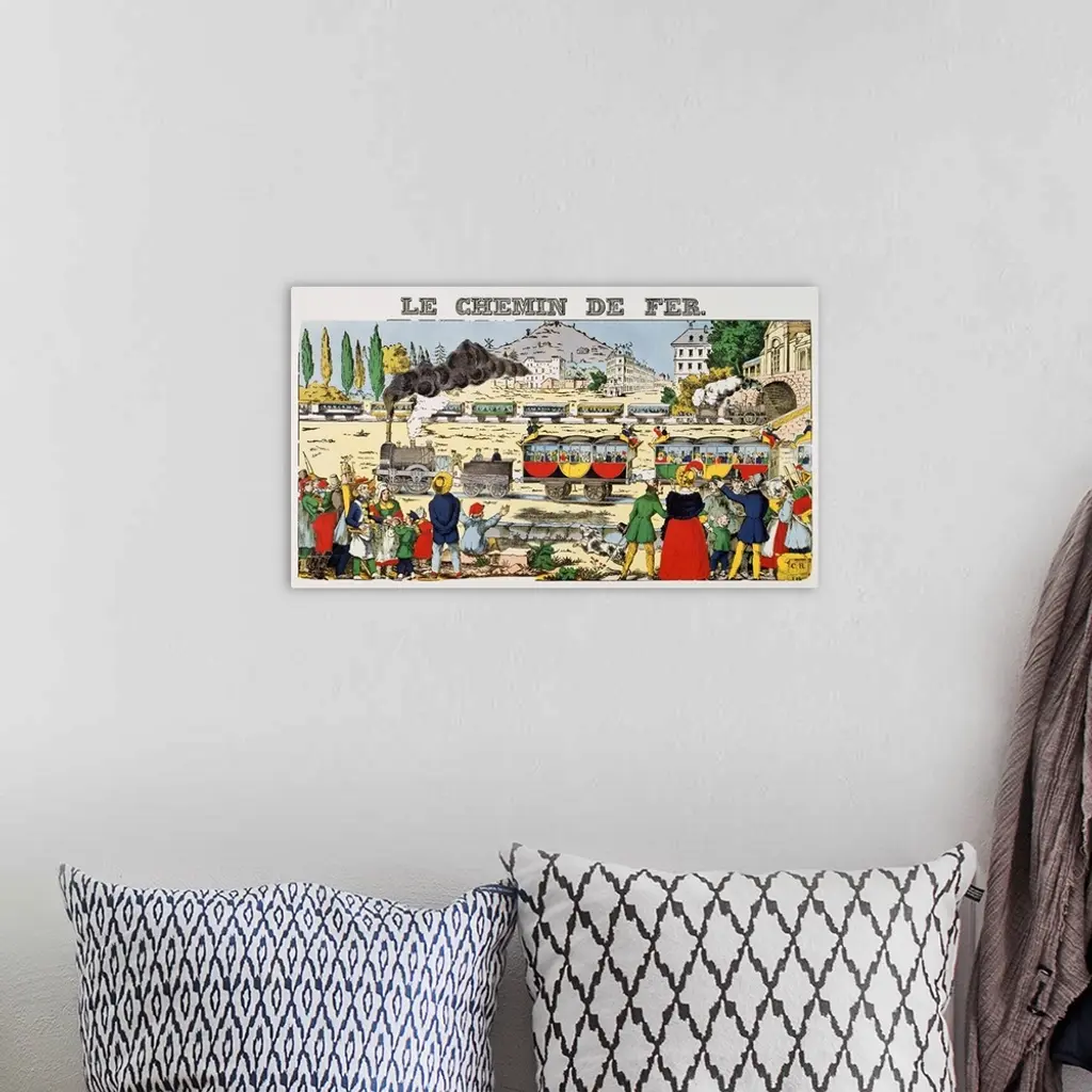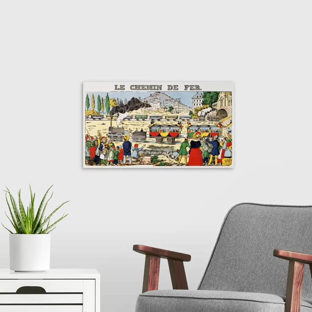 Le Chemin de Fer, an early French railway. French lithograph, 1838.