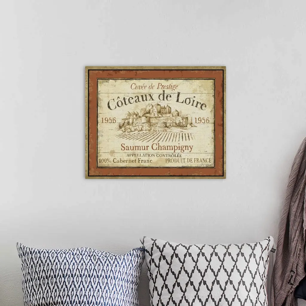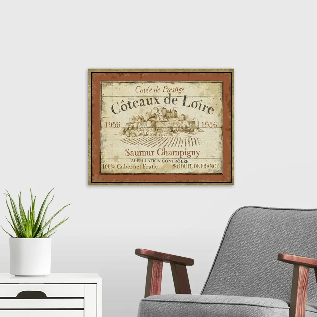 Blown-up label for wine bottle. The label is for a bottle of 1956 Coteaux de Loire that is 100% Cabernet Franc.