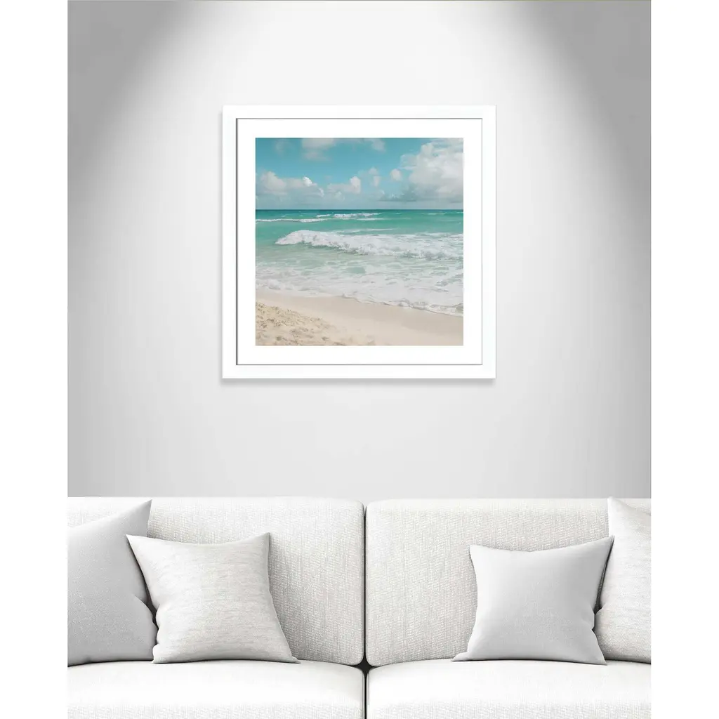Bring the beach to your living room with this breathtaking coastal photography image, 'Fresh Waters'. This piece will add a splash of turquoise to your Cape Cod style home decor and encourage an ambiance of beauty and relaxation in any room in your home. Finished in a modern frame made of PS materials, this is the perfect addition to your walls. Archival fine art giclée print on acid-free and lignin-free 100% cotton rag paper; image includes a bright white self-matting border Printed with gallery-quality inks using the finest giclée print technology for unsurpassed color gamut and clarity Lightweight and finished under shatter-resistant acrylic; hanging hardware attached for easy and secure installation Handcrafted in the USA and ships with a Certificate of Authenticity Lightweight and finished under shatter-resistant acrylic