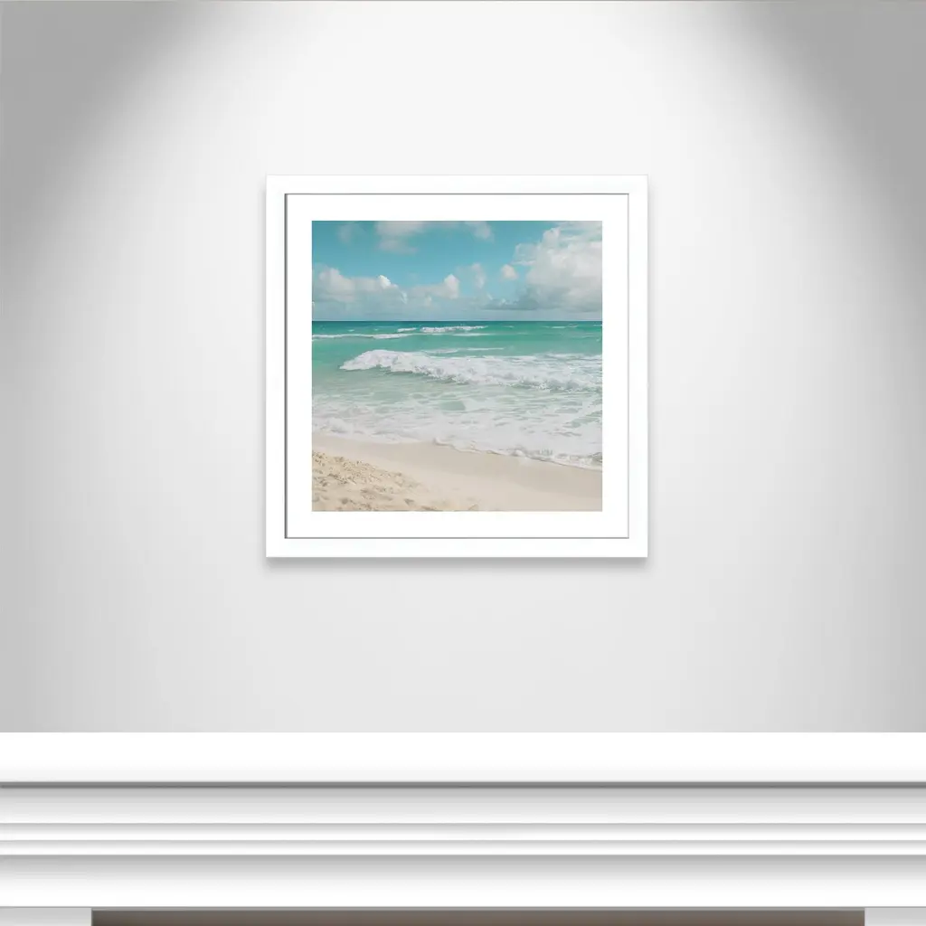 Bring the beach to your living room with this breathtaking coastal photography image, 'Fresh Waters'. This piece will add a splash of turquoise to your Cape Cod style home decor and encourage an ambiance of beauty and relaxation in any room in your home. Finished in a modern frame made of PS materials, this is the perfect addition to your walls. Archival fine art giclée print on acid-free and lignin-free 100% cotton rag paper; image includes a bright white self-matting border Printed with gallery-quality inks using the finest giclée print technology for unsurpassed color gamut and clarity Lightweight and finished under shatter-resistant acrylic; hanging hardware attached for easy and secure installation Handcrafted in the USA and ships with a Certificate of Authenticity Lightweight and finished under shatter-resistant acrylic