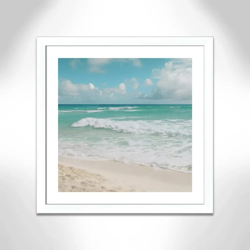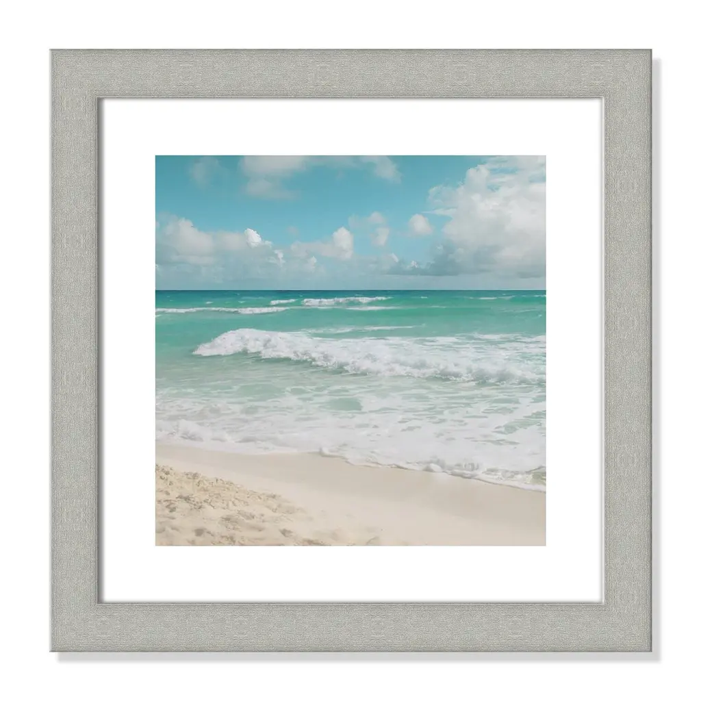 Bring the beach to your living room with this breathtaking coastal photography image, 'Fresh Waters'. This piece will add a splash of turquoise to your Cape Cod style home decor and encourage an ambiance of beauty and relaxation in any room in your home. Finished in a modern frame made of PS materials, this is the perfect addition to your walls. Archival fine art giclée print on acid-free and lignin-free 100% cotton rag paper; image includes a bright white self-matting border Printed with gallery-quality inks using the finest giclée print technology for unsurpassed color gamut and clarity Lightweight and finished under shatter-resistant acrylic; hanging hardware attached for easy and secure installation Handcrafted in the USA and ships with a Certificate of Authenticity Lightweight and finished under shatter-resistant acrylic