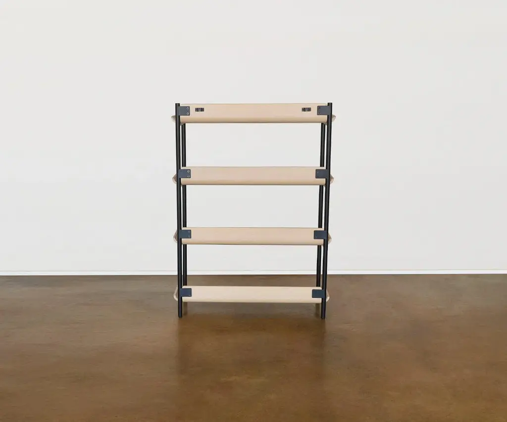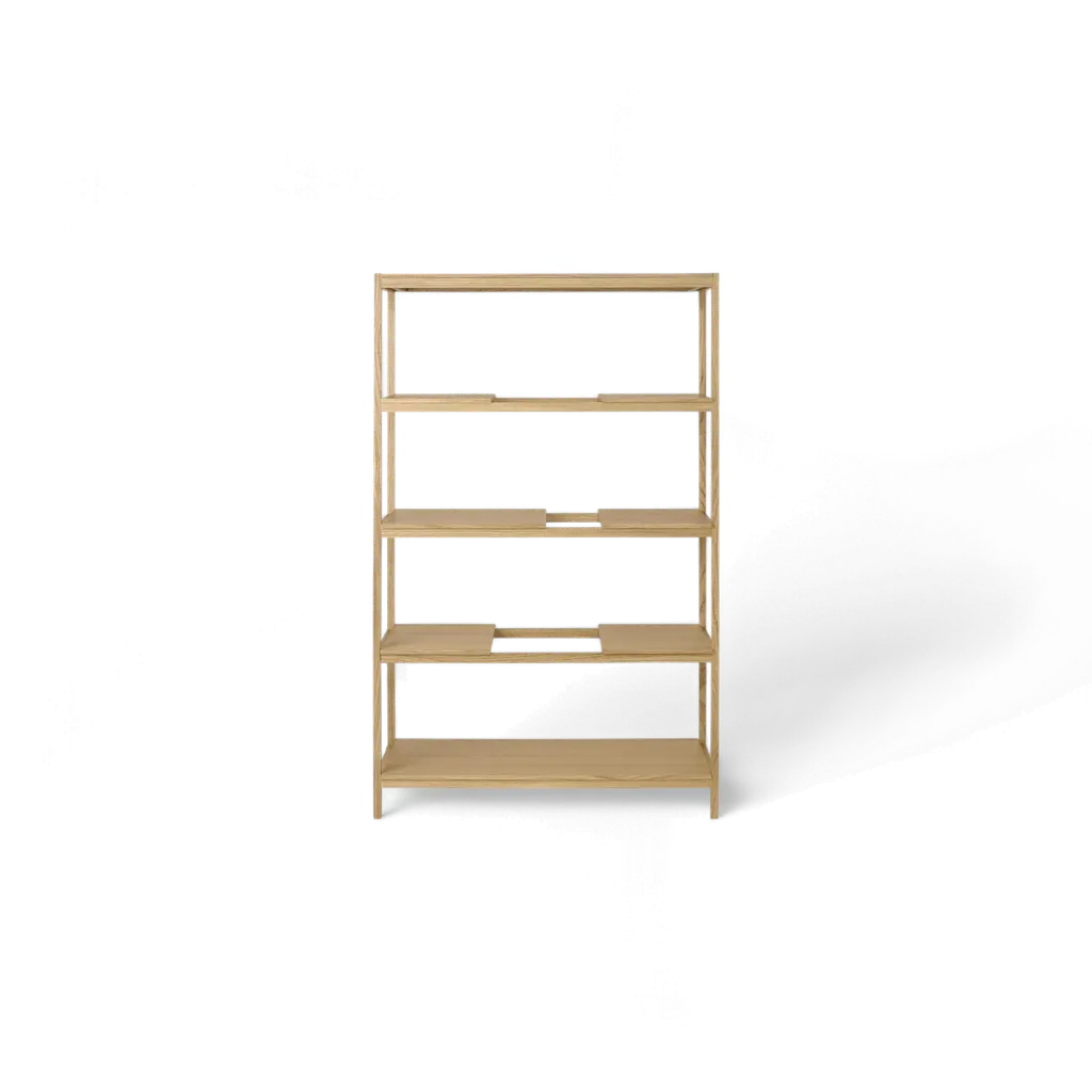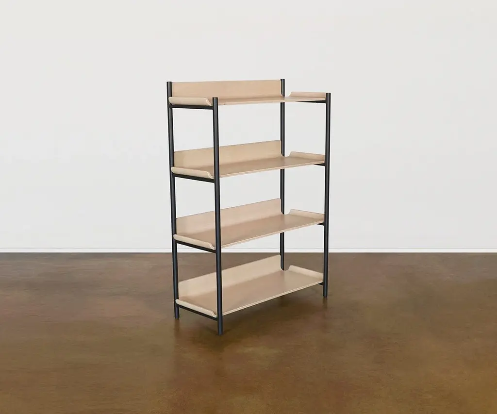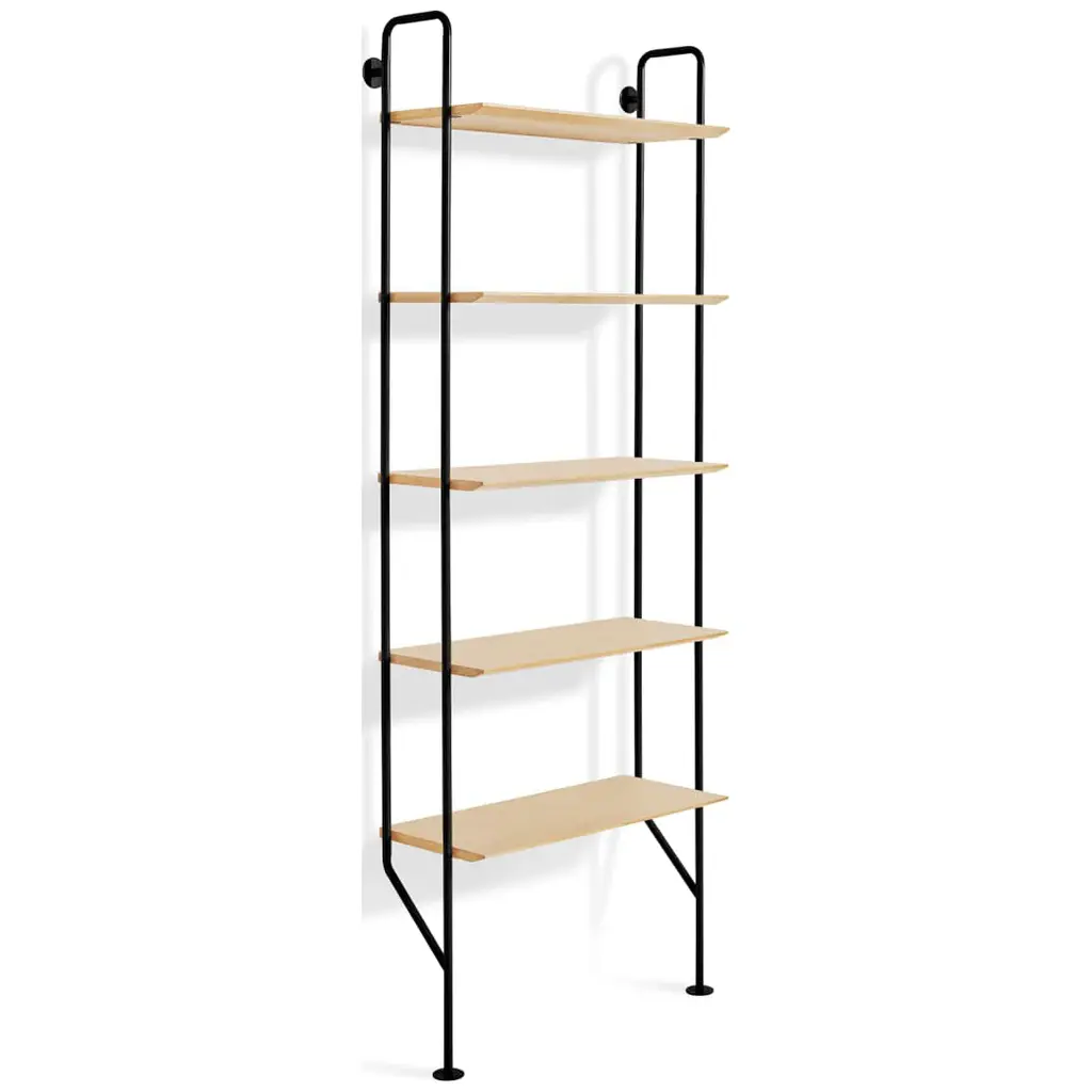 Contemporary and highly versatile, Freya Shelves combine white oak veneer with black metal for a modern look that works with any decor style.