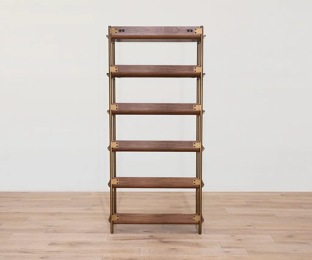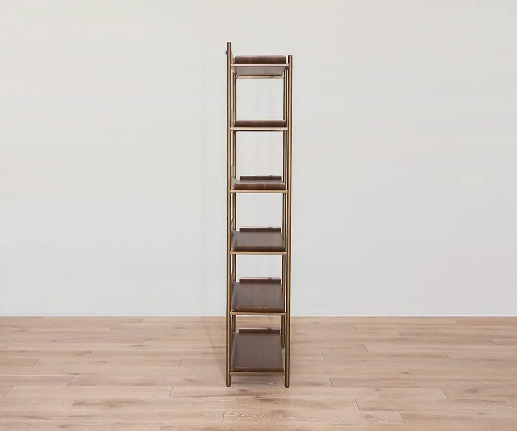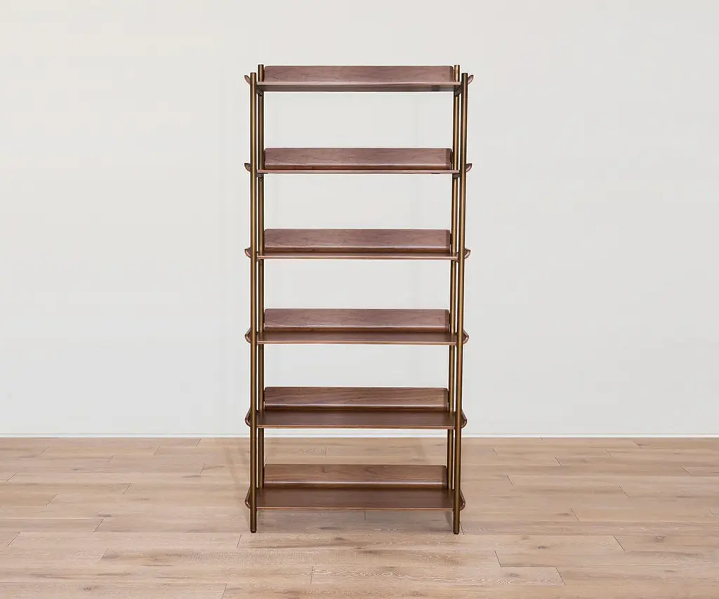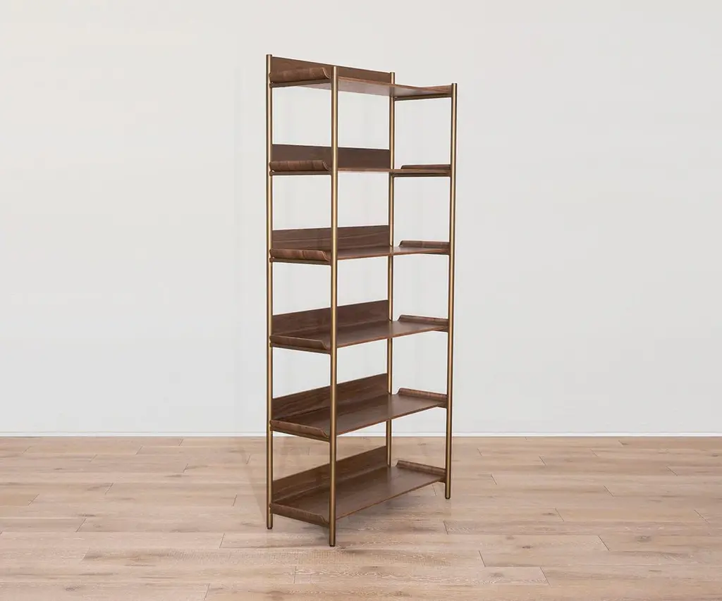 Convenient and highly versatile, the Freya Shelves with Desk is the ultimate multitasker, combining walnut veneer and black metal for a modern look that complements any decor style.