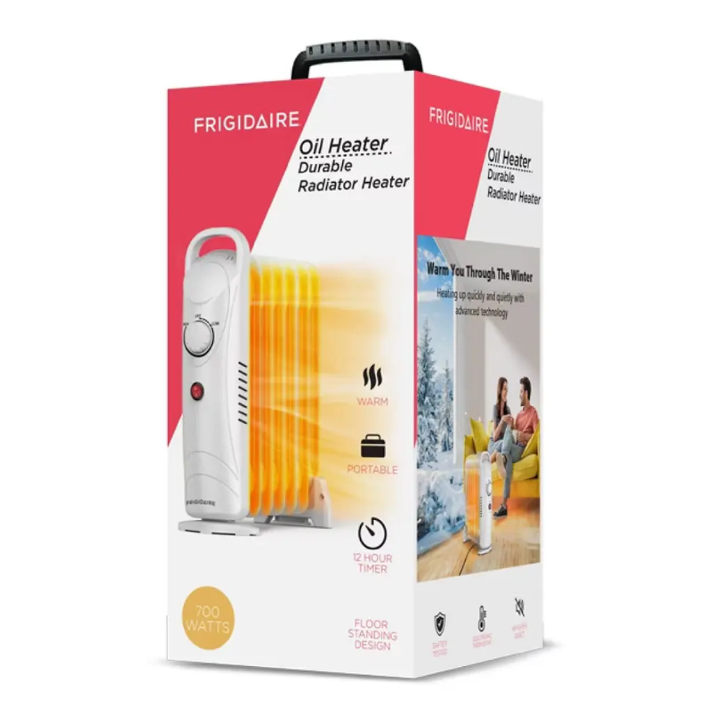 The Frigidaire Oil Heater Durable Radiator Heater is designed to provide efficient, consistent warmth for any room. Featuring a durable construction and advanced heating technology, this radiator heater offers safe, reliable performance to help you stay warm during cold months. Its oil-filled system ensures long-lasting heat retention while keeping your space comfortably warm without the need for constant operation.