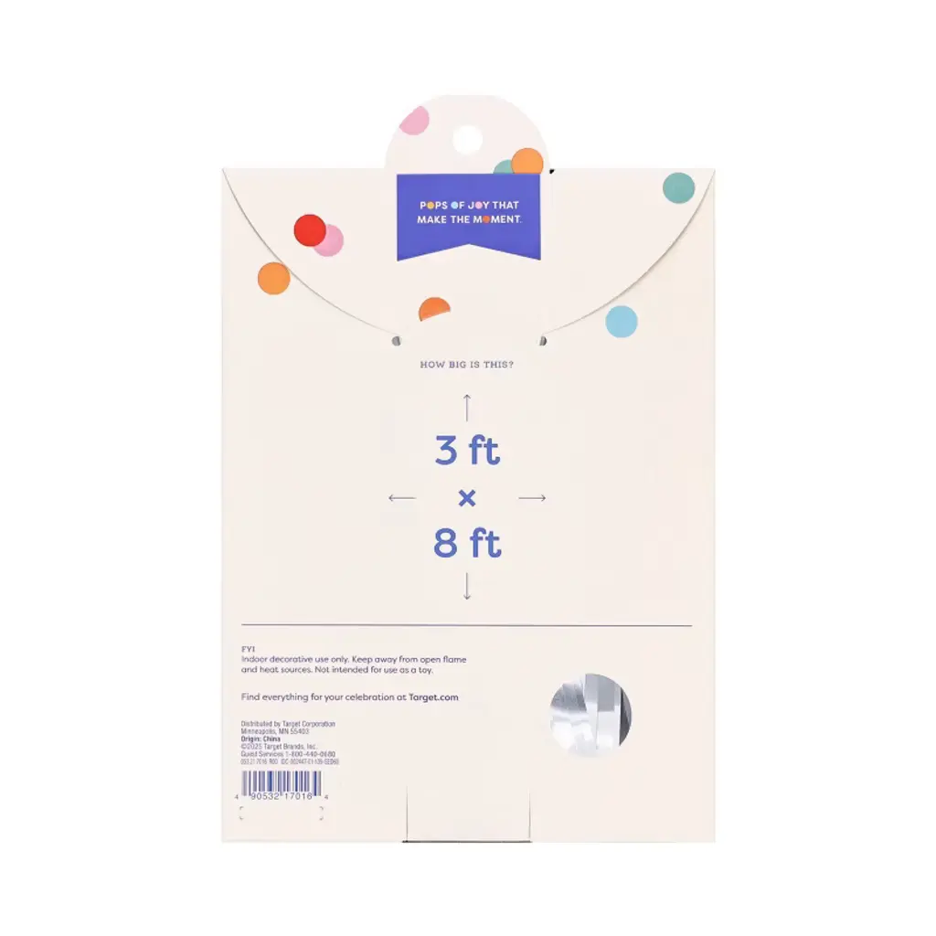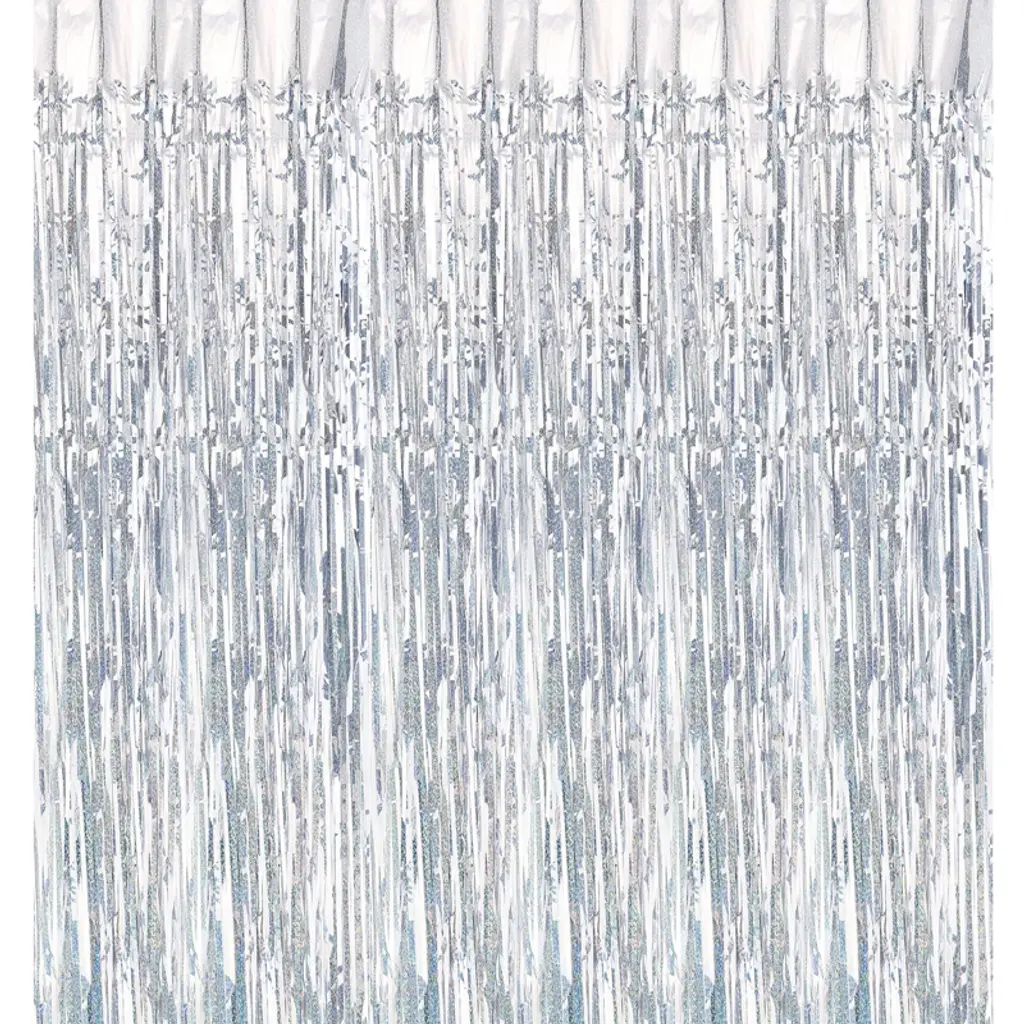 Add some sparkle to your party with the Fringe Backdrop Silver from Spritz™. This fun fringe backdrop in silver is perfect for creating a festive atmosphere at any event. Whether you're hosting a birthday party, baby shower, or any other celebration, this backdrop will make your photos pop. It's made from durable foil material, ensuring it holds up throughout the festivities. Ideal for both party decorations and gifting supplies, this backdrop is a simple way to add a touch of glamour to your special occasion.