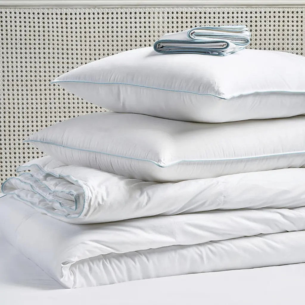 All the luxury of down without the feathers. All-cotton sateen shells envelope recycled polyester fiberfill that mimics the softness and comfort of down while being gentle on your allergies, resulting in luxuriously comfortable duvet and pillow inserts to go with your bedding. Each set also includes pillow protectors to help extend the life of your pillows by reducing normal wear and blocking potential allergens.100% cotton sateen shellOEKO-TEX® certified (devoid of harmful substances)330 thread countSet includes: a duvet insert, two pillow inserts and two pillow protectorsImported/Made in USA Recycled polyester fiberfillDuvet Insert and Pillow Inserts:100% recycled polyester fiberfill650 fill powerPillow inserts are medium/firm densityBaffle box construction keeps fill evenly distributed Four corner tabs secure duvet cover Double needle stitched edge with braided cotton piping Machine wash cold with mild detergent, tumble dry low with wool dryer balls; or professionally dry cleanPillow Protectors:Hidden zipper closure fillMachine wash cold with mild detergent; tumble dry low A Frontgate exclusiveAt Frontgate, our primary focus is quality. We guarantee that every product we sell will stand up to the supreme test – our customers' satisfaction. To learn more about our policies, visit our Shipping & Processing, Returns & Exchanges and Warranty & Price Guarantee pages.