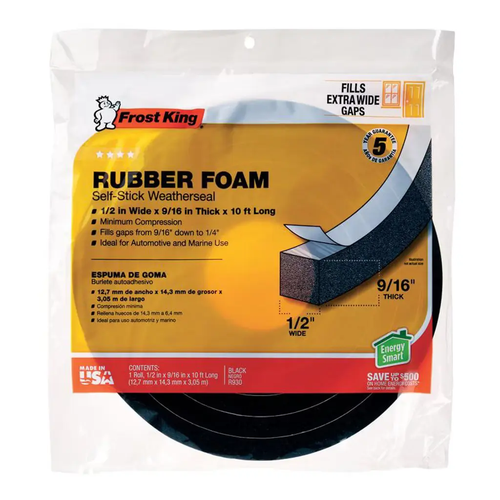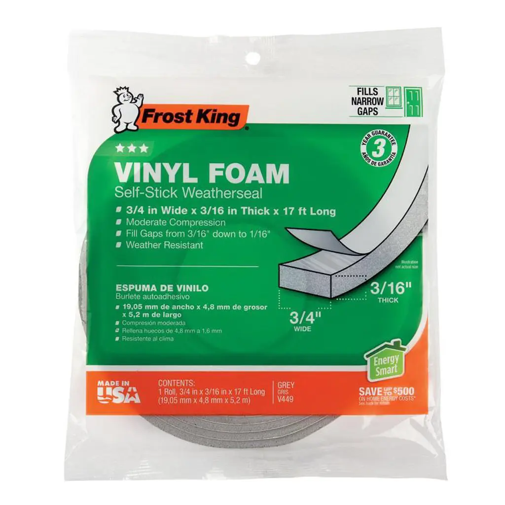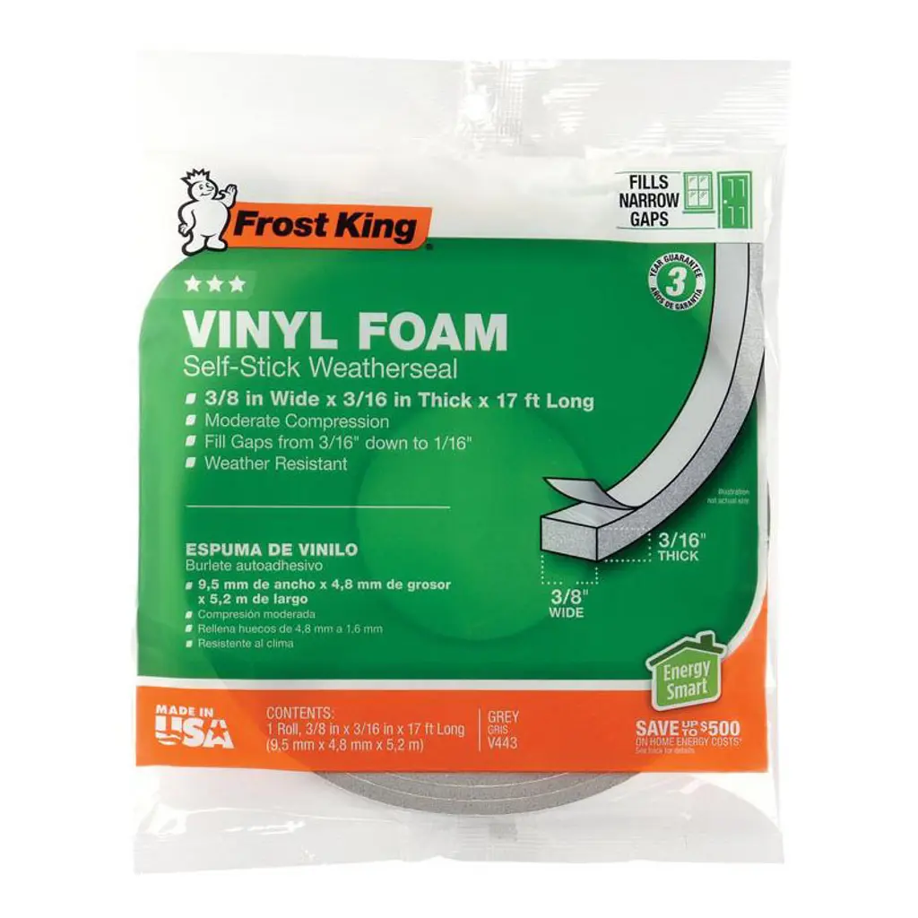 The Frost King Self-Adhesive Polyfoam Weatherseal Tape is designed to seal gaps around doors and windows, enhancing energy efficiency by preventing drafts. This 17-foot, charcoal-colored tape compresses to fill narrow, uneven spaces. Its self-adhesive backing allows for easy installation without the need for tools. Ideal for interior use, it helps maintain indoor comfort and reduce energy costs. However, this weatherseal tape is not suitable for areas exposed to moisture.