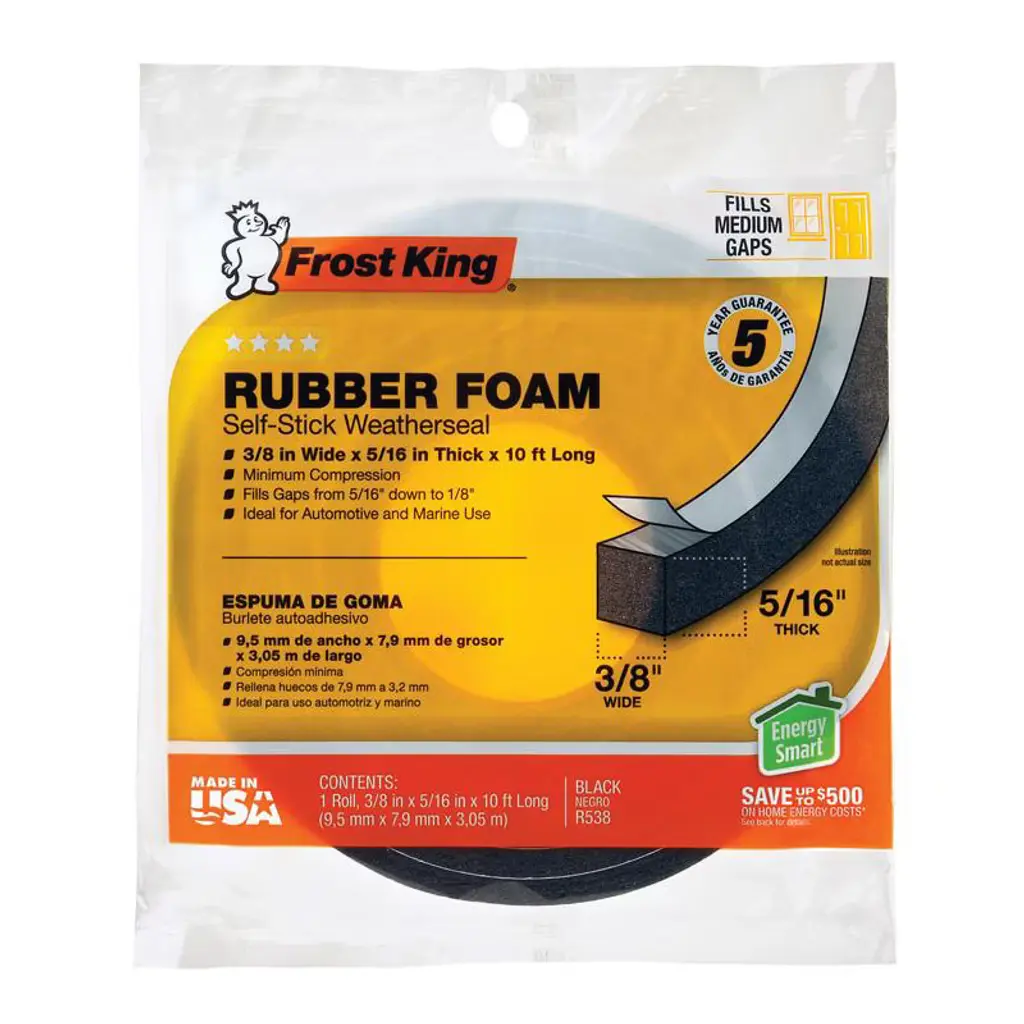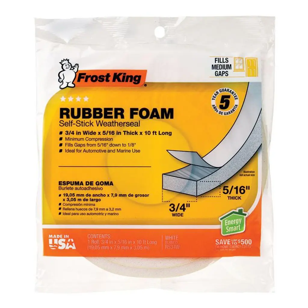 Frost King's Poly Foam Weatherseal is a highly compressible self-stick tape designed for interior use. The polyurethane foam squeezes down to fill even very narrow gaps. It effectively seals gaps around doors and windows, preventing drafts, dust, and moisture infiltration. Its flexibility allows it to conform to uneven surfaces, enhancing energy efficiency by reducing heating and cooling costs.