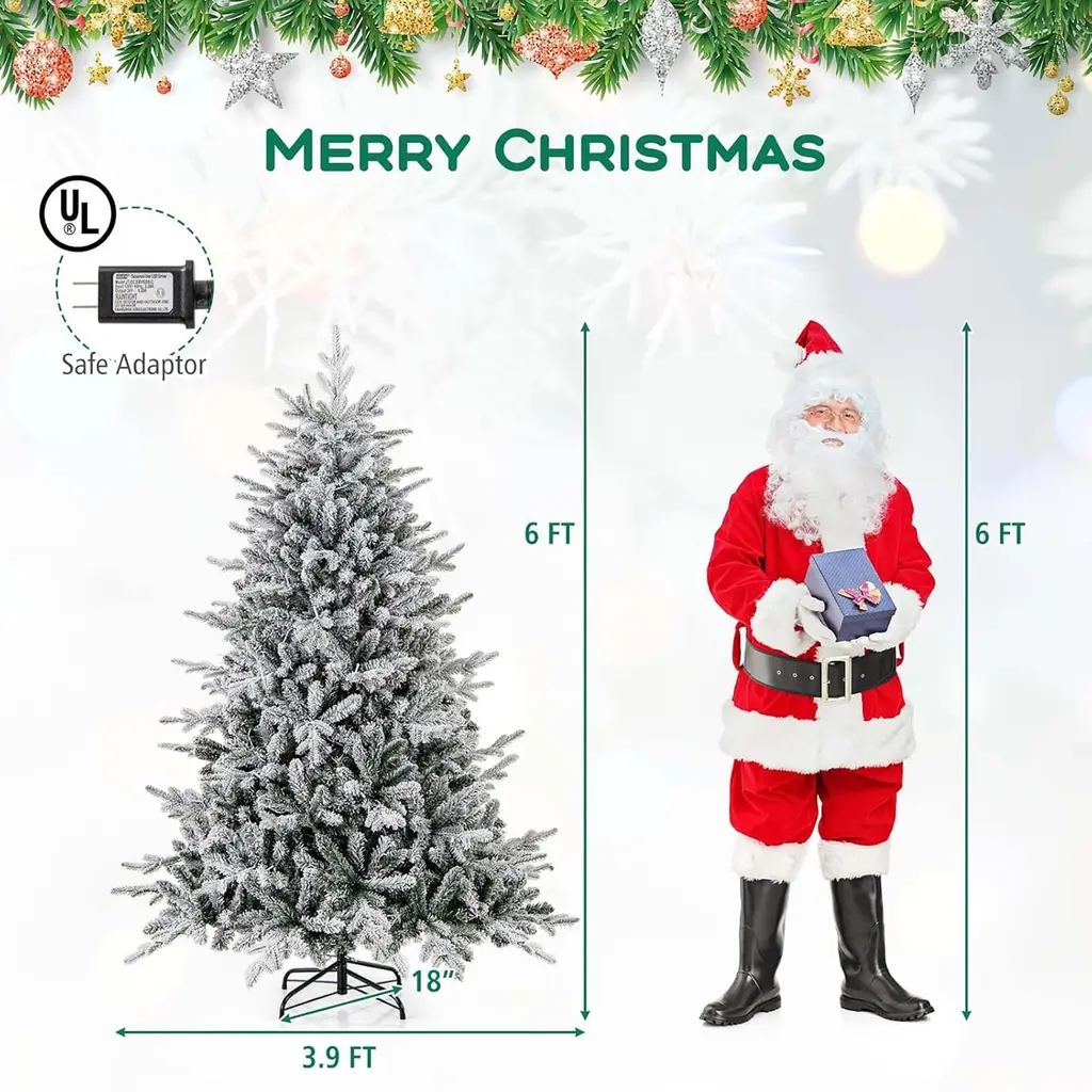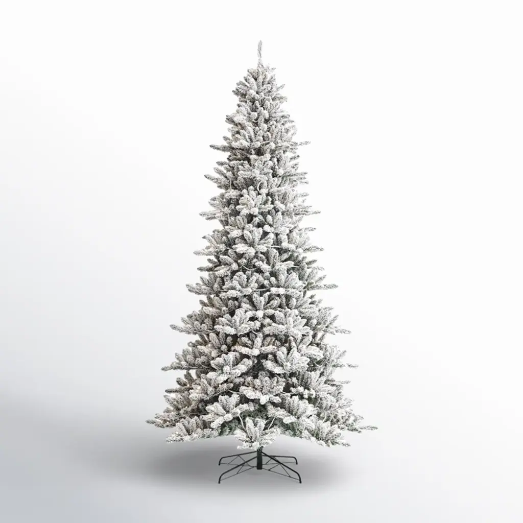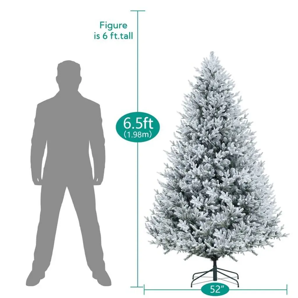 Snowy Christmas Tree: Bring the magic of winter into your home with the frosted fir Snowy Christmas Tree. This lush and full tree adds vitality to your holiday decor, featuring gentle white frosted tips, warm LED lighting, and lifelike pinecones. Its cozy and inviting appearance will fill your home with warmth, and the pre-lit design ensures easy setup and storage, enhancing your holiday convenience.Features:Pre-Lit for Your Convenience: The Frosted fir Snowy Christmas Tree comes pre-lit with 650 incandescent lights, making setup a breeze. These warm lights highlight your decorations and holiday gifts, making your snow flocked Christmas tree truly special.Dense, Realistic, and Full: Standing at 7.5 feet, this pre-lit Christmas tree boasts 3266 branch tips, 650 warm lights, and a girth of 59 inches, providing an unmatched realistic and full appearance. The Artificial Christmas Tree is designed to offer the most lifelike experience. Other available sizes include:6.5 feet: 2456 branch tips, 450 lights, 52" girthBuilt to Last: While the festive season may be brief, the frosted fir Lighted Christmas Tree is built to last. Made from high-quality PE and PVC materials and supported by a sturdy metal stand, this tree is designed for longevity. The materials are flame retardant and non-allergenic, ensuring safe and hassle-free storage for years to come.Easy to Assemble: Featuring hinged branches, the flocked pre-lit Christmas tree is easy to assemble and disassemble. The branches fall into place for easy fluffing and fold back up for convenient storage. Our proprietary packaging ensures the safe delivery of the frosted Christmas tree to your home. The tree comes with a 90-day manufacturer's warranty, and our customer support team is available for easy refunds or replacements if needed.