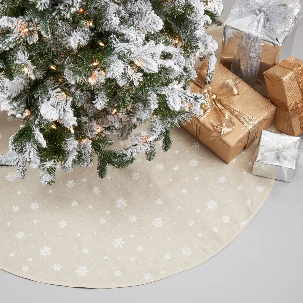 Transform your holiday décor into a winter wonderland with this Frosty Flurry Tree Skirt. Crafted with care and designed to capture the magic of a snowy landscape, this exquisite tree skirt brings a touch of enchantment to your Christmas celebrations.Features: