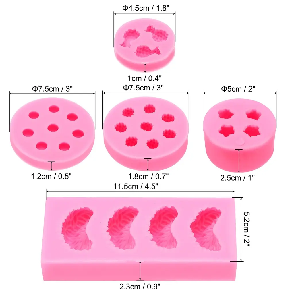 The silicone mold not only can it be used to make any type of mold, such as hard candy, soft candy,, soap,, chocolate, wax, ice, and all kinds of molded clay decoration cakes, it can also be used for DIY clay crafts.SpecificationMaterial: SiliconeSize:Strawberry: 5*2.5cm / 2x1 inchRaspberry: 7.5*1.8cm / 3x0.7 inchblueberry-shape: 7.5*1.2cm / 3x0.5inchOrange: 11.5*5*2cm / 4.5x2x0.8 inchPineapple: 4.5*1cm / 1.8x0.4 inchAdvantage silicone mold are safe, good,, very flexible and reusable. Non-stick release, very easy to clean, oven, microwave, freezer and dishwasher safe from -40°F to 230°F.InstructionSimply pour your ingredients into the mold, and keep the ingredients static until completely formed.NOTEPlease apply a little butter or oil before baking.