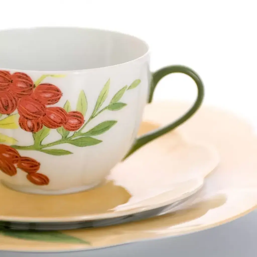 With its design of large summer fruits and cheerful yellow background, Summer Fruits dinnerware brings a touch of warmth to the table. Five-piece place setting includes dinner plate, dessert plate, bread/butter plate, teacup, and saucer. As the oldest porcelain factory in the French city of Limoges, Royal Limoges boasts a long history of creating hand crafted dinnerware from its own kaolin clay. Since 1797, its exclusive patterns have been enjoyed by clients worldwide.