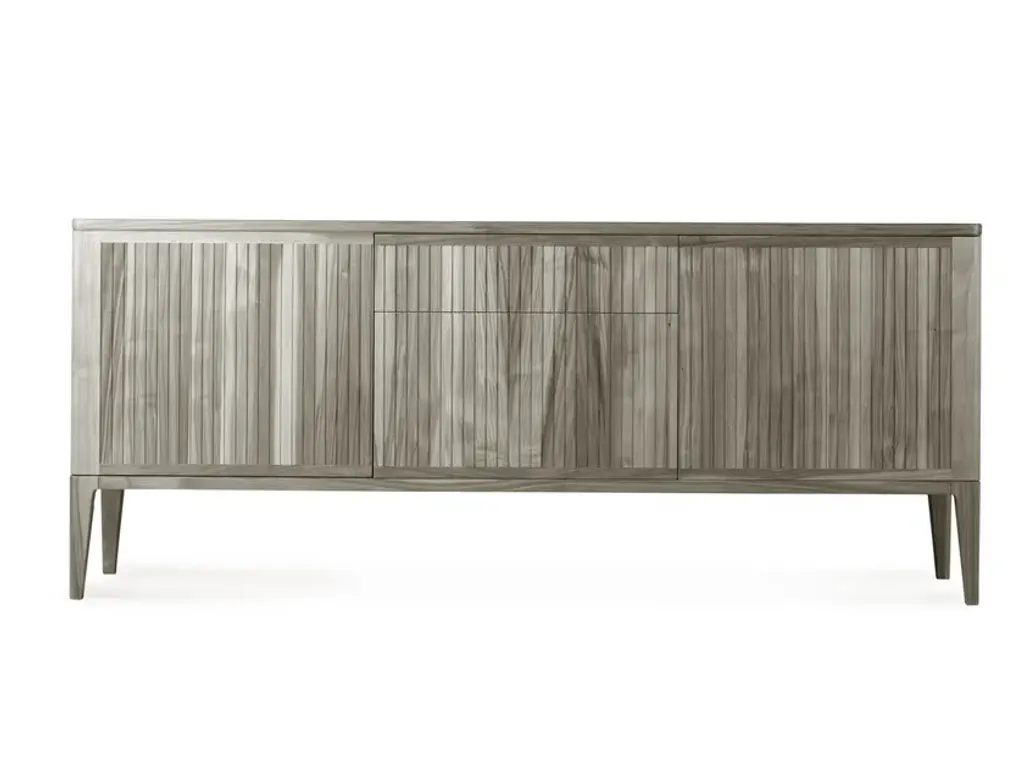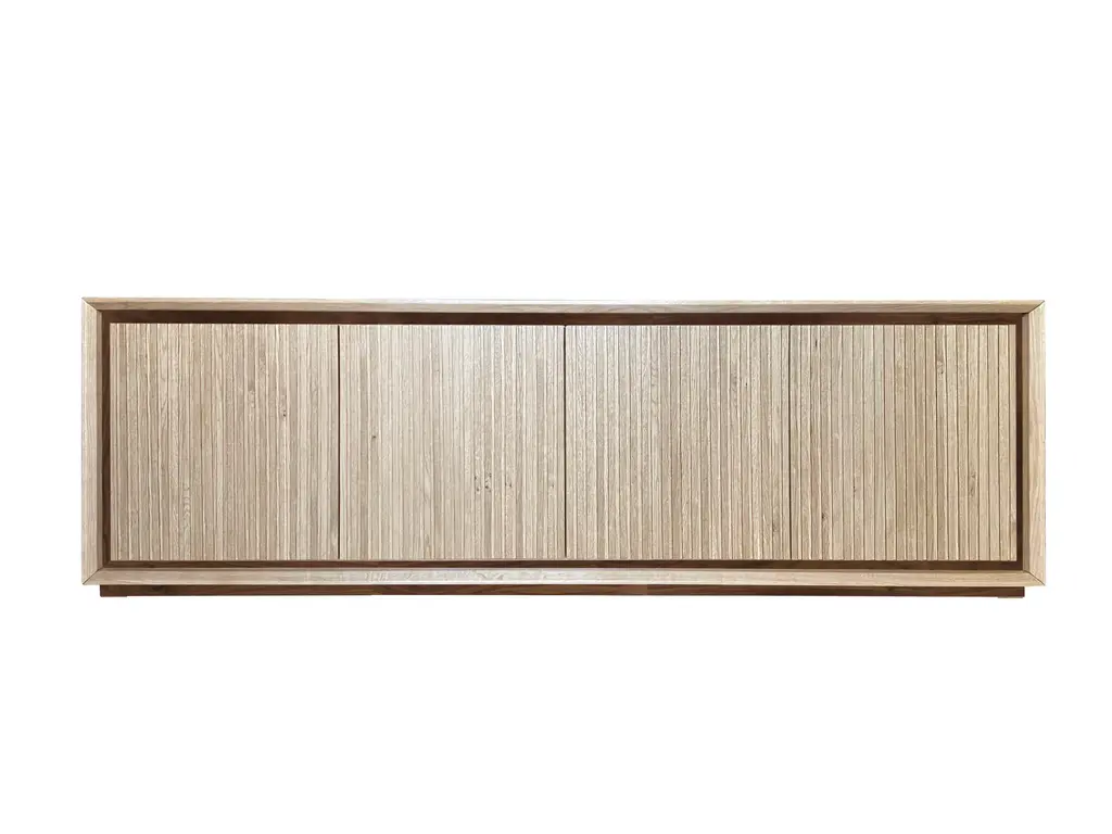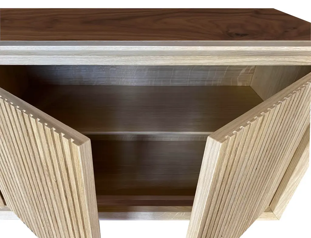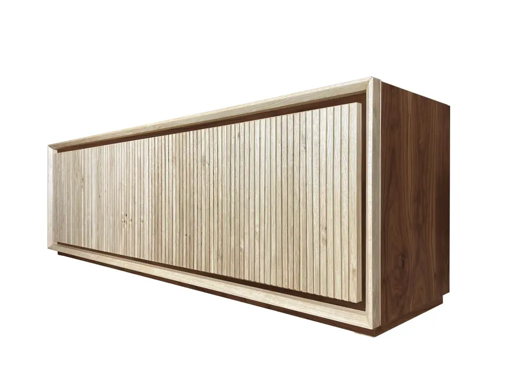 Credenza "Escape Noce Uno" by Mascia Meccani for Meccani Design, 2022. 4 -doors in oak and walnut canal. Dimensions 200 x 48 x h 61 cm Labeled by Maker
