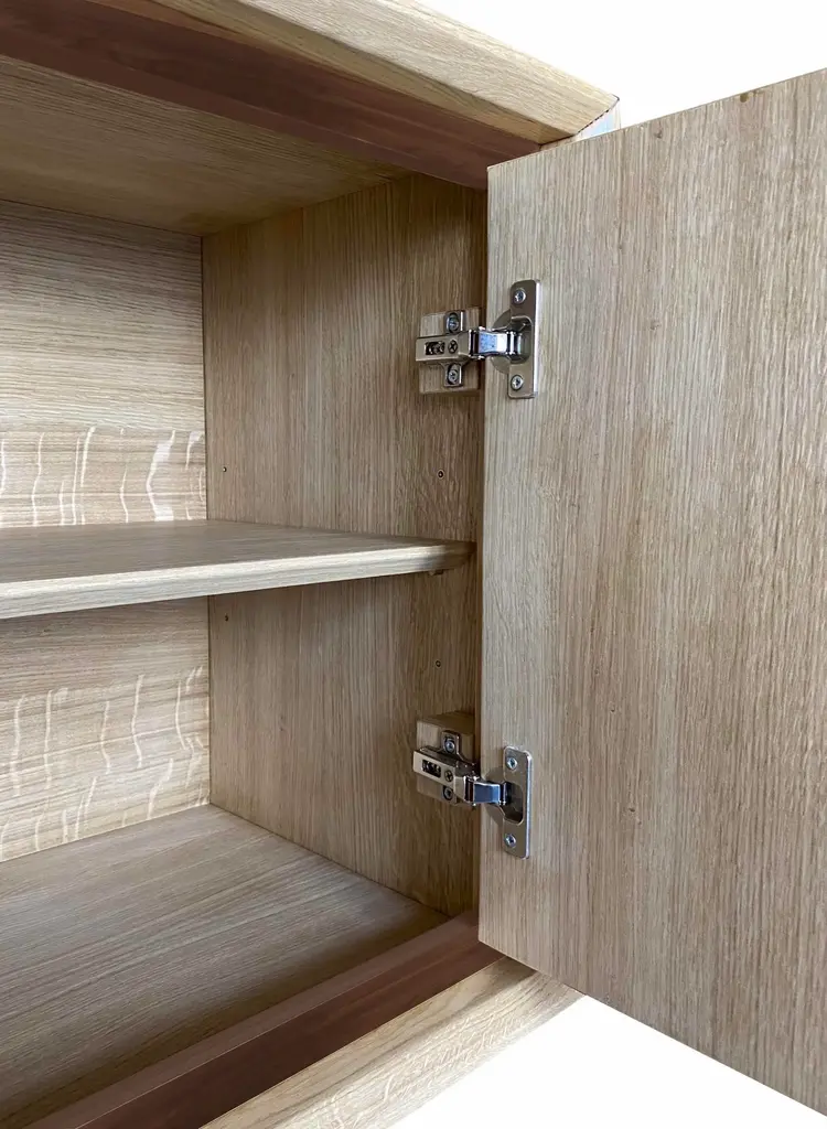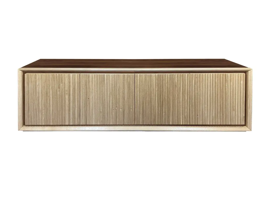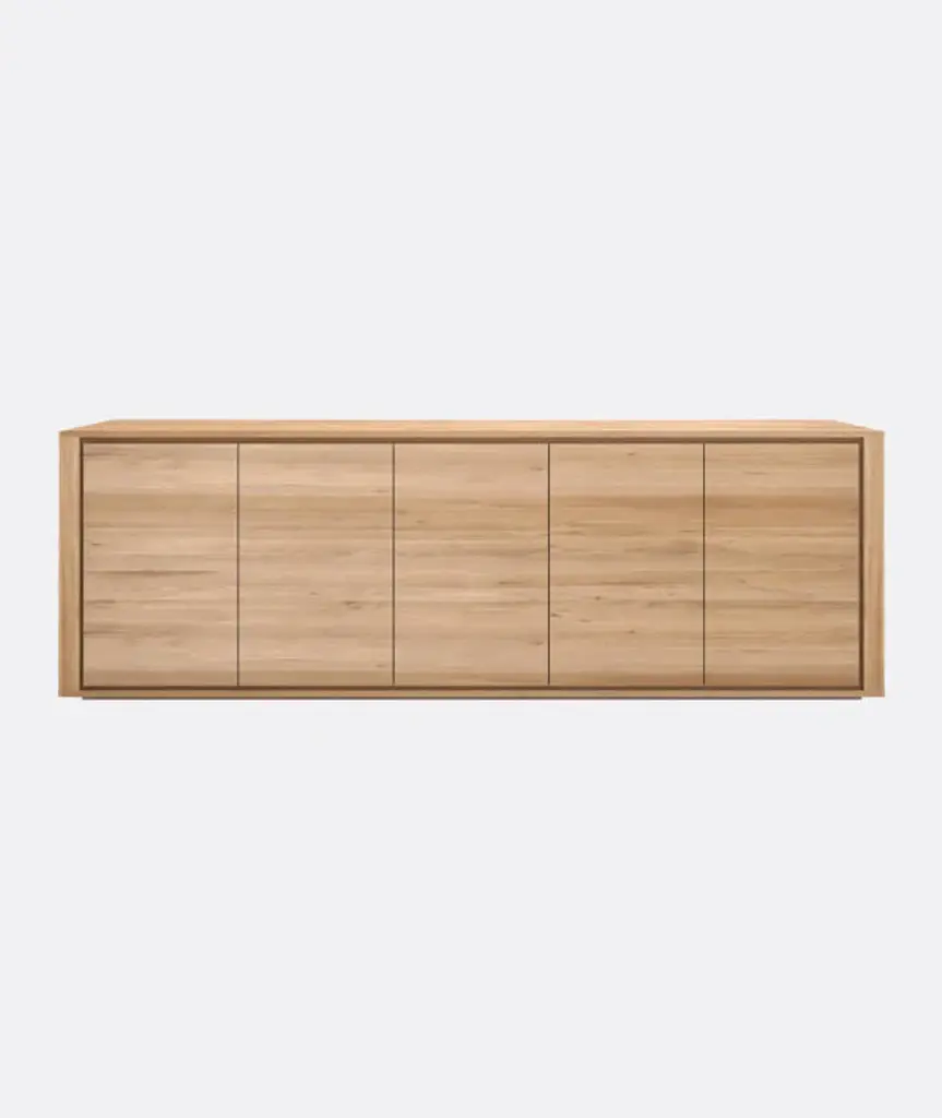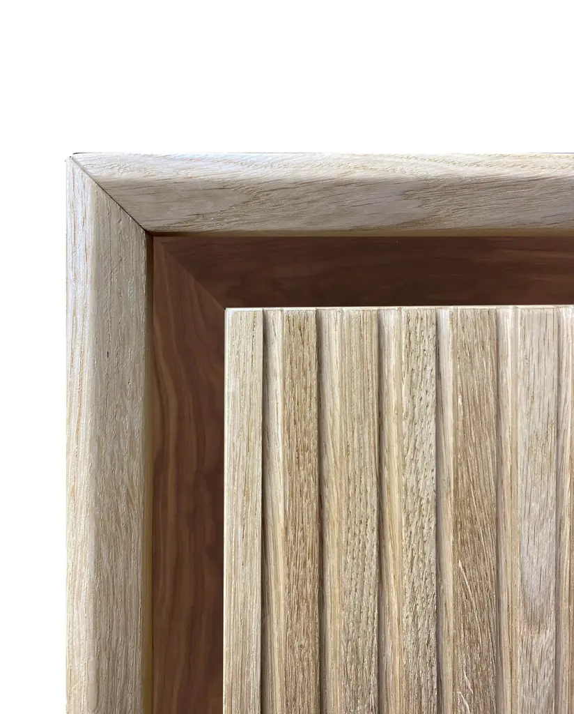 Credenza "Escape Noce Uno" by Mascia Meccani for Meccani Design, 2022. 4 -doors in oak and walnut canal. Dimensions 200 x 48 x h 61 cm Labeled by Maker