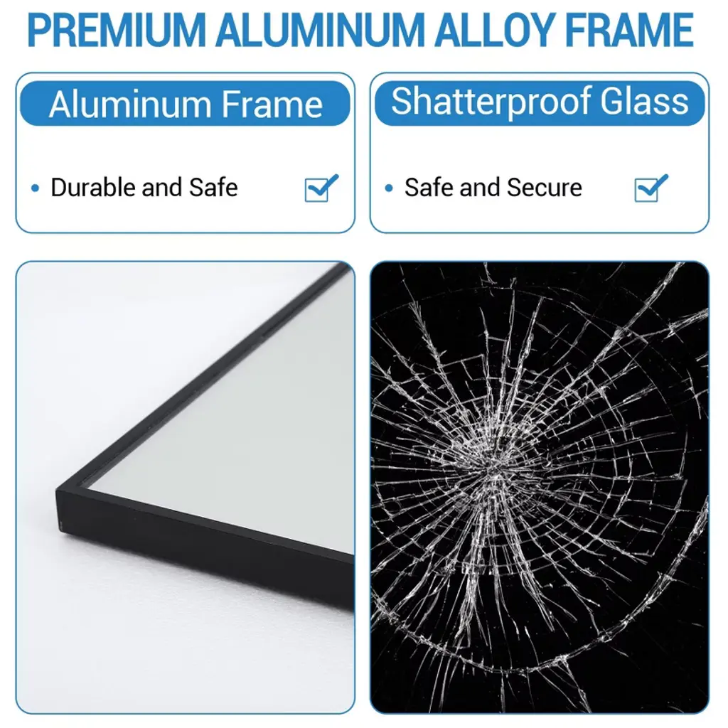 Crafted with multi-layer, explosion-proof glass and a copper-free silver nitrate coating, this mirror ensures vivid, true-to-life reflections while protecting against shattering. The rust-resistant, tempered glass exceeds safety standards—should breakage occur, shards adhere to a protective film, preventing spills for total peace of mind. Its anti-oxidation treatment maintains lasting clarity, making it suitable for humid bathrooms or busy households.