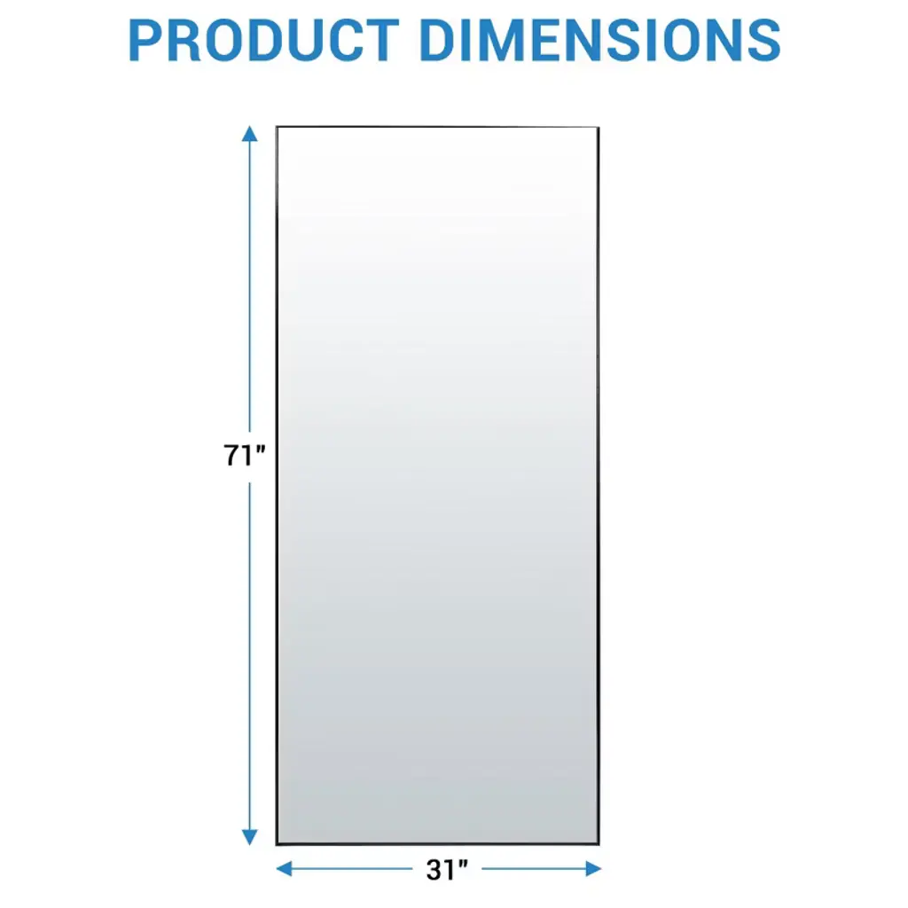 Full Length Mirror, Large Mirror Standing Or Hanging Full Body Mirror With Aluminum Alloy Thin Frame 71x31in Black