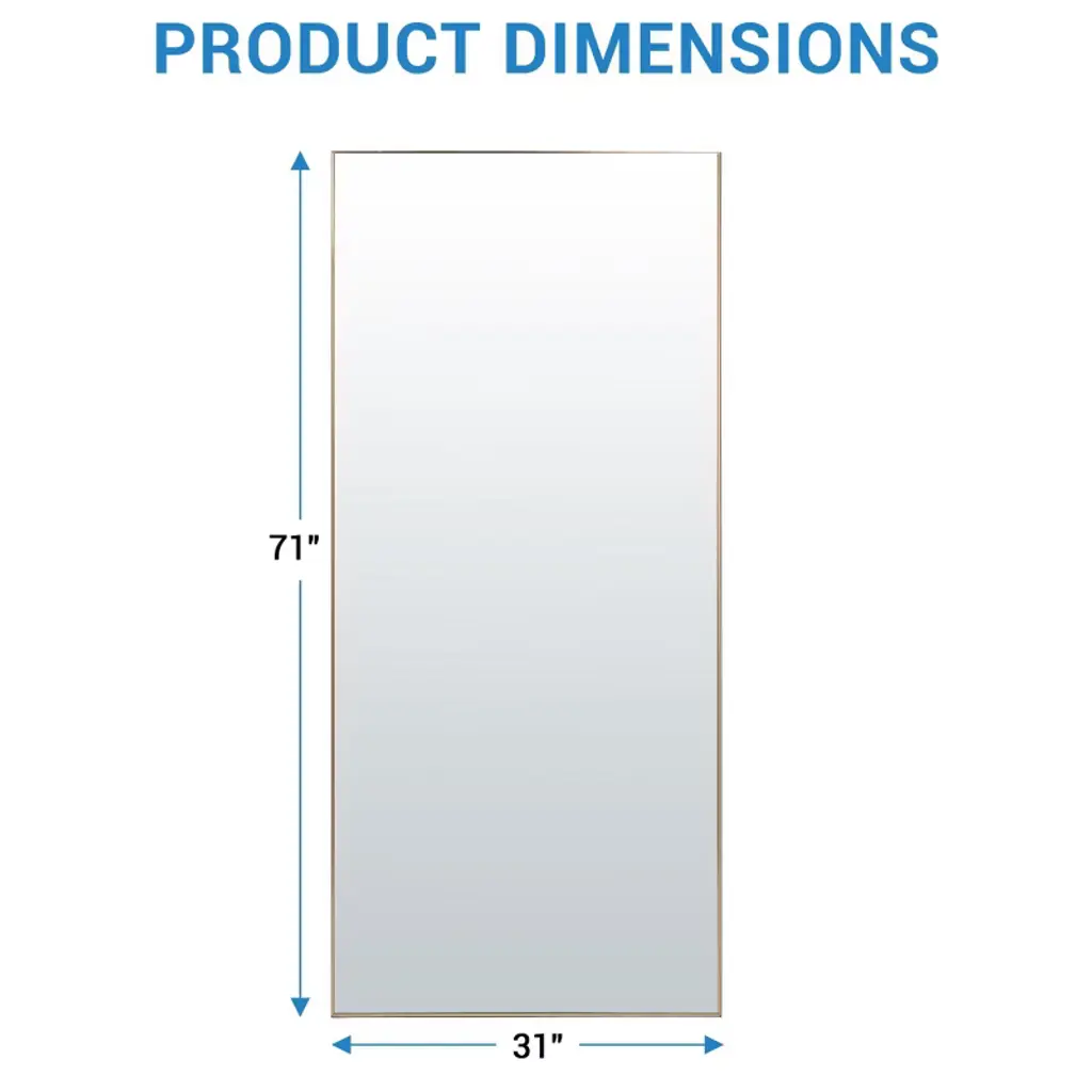 Full Length Mirror, Large Mirror Standing Or Hanging Full Body Mirror With Aluminum Alloy Thin Frame 71x31in Gold