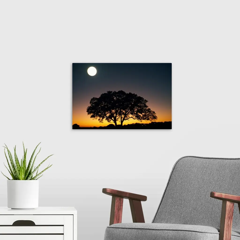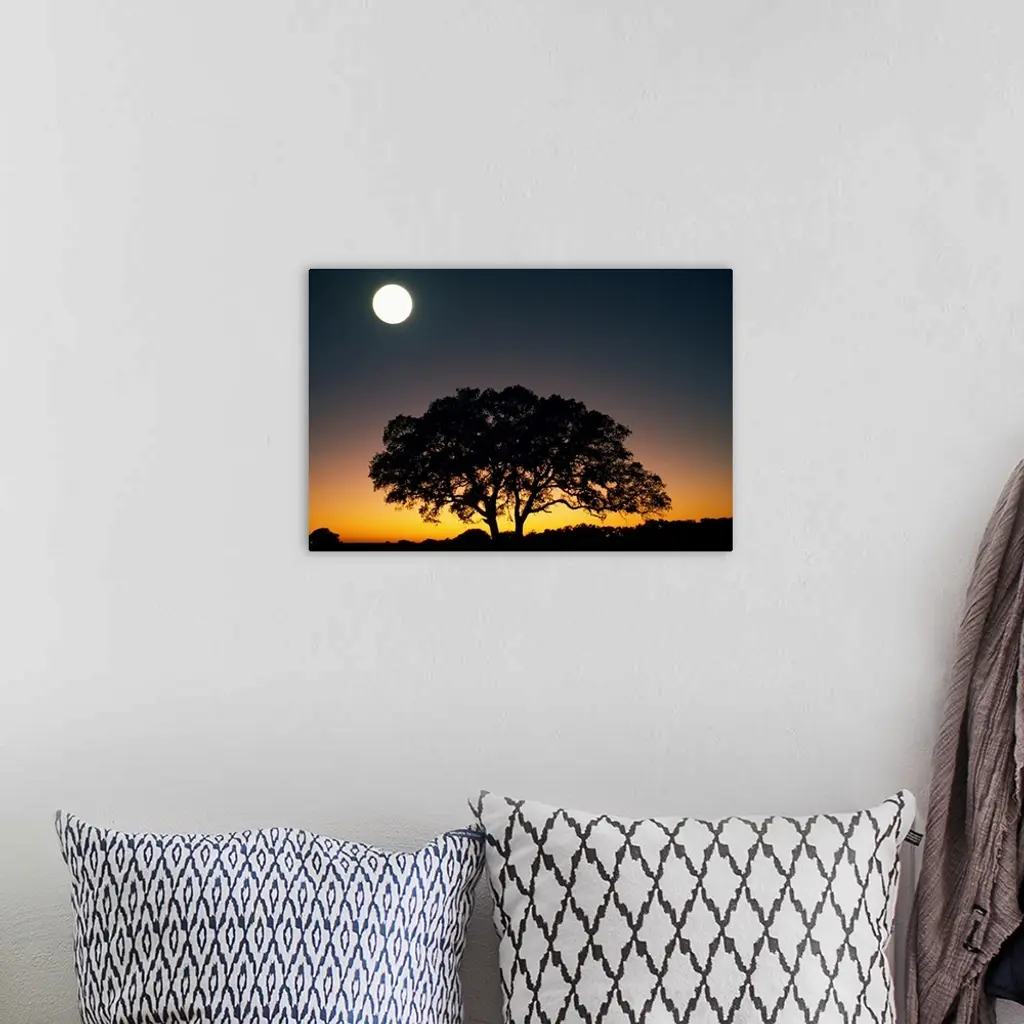 This is a landscape photograph of a lone tree on the ridge of a hill in the evening light.