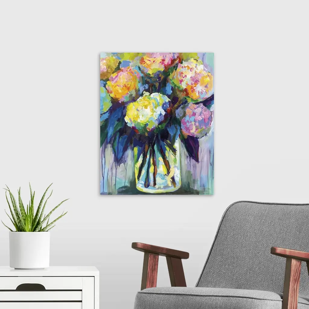 Full Of Hydrangeas wall art for home and office decor. Discover canvas art prints, photos, mural, big canvas art and framed wall art in GreatBigCanvas.com's varied collections.